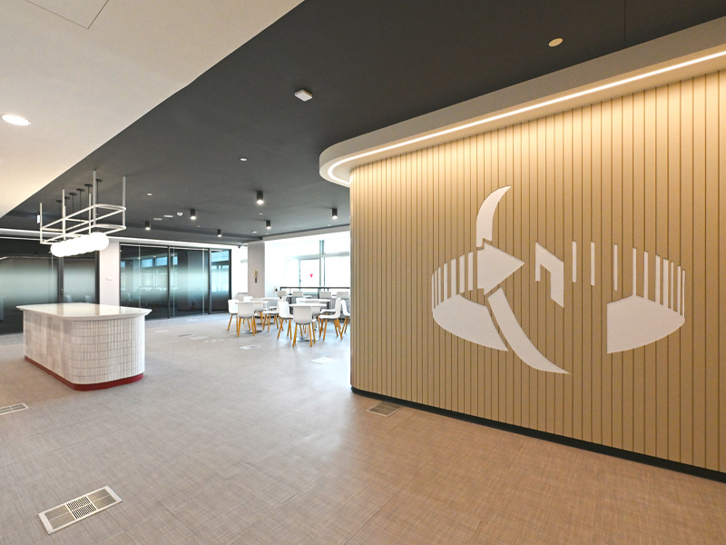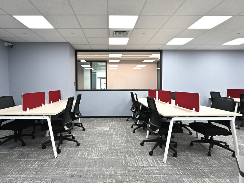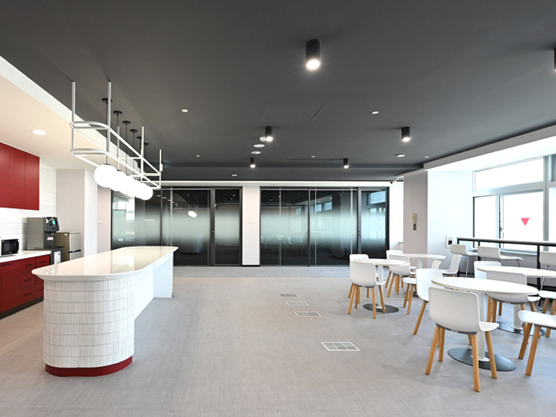 採用沉穩設計風格,使用財經色調搭配深紅、粉橘、正黃的些許跳色,讓整體以穩重中融合點活力,賦予空間的延伸感。