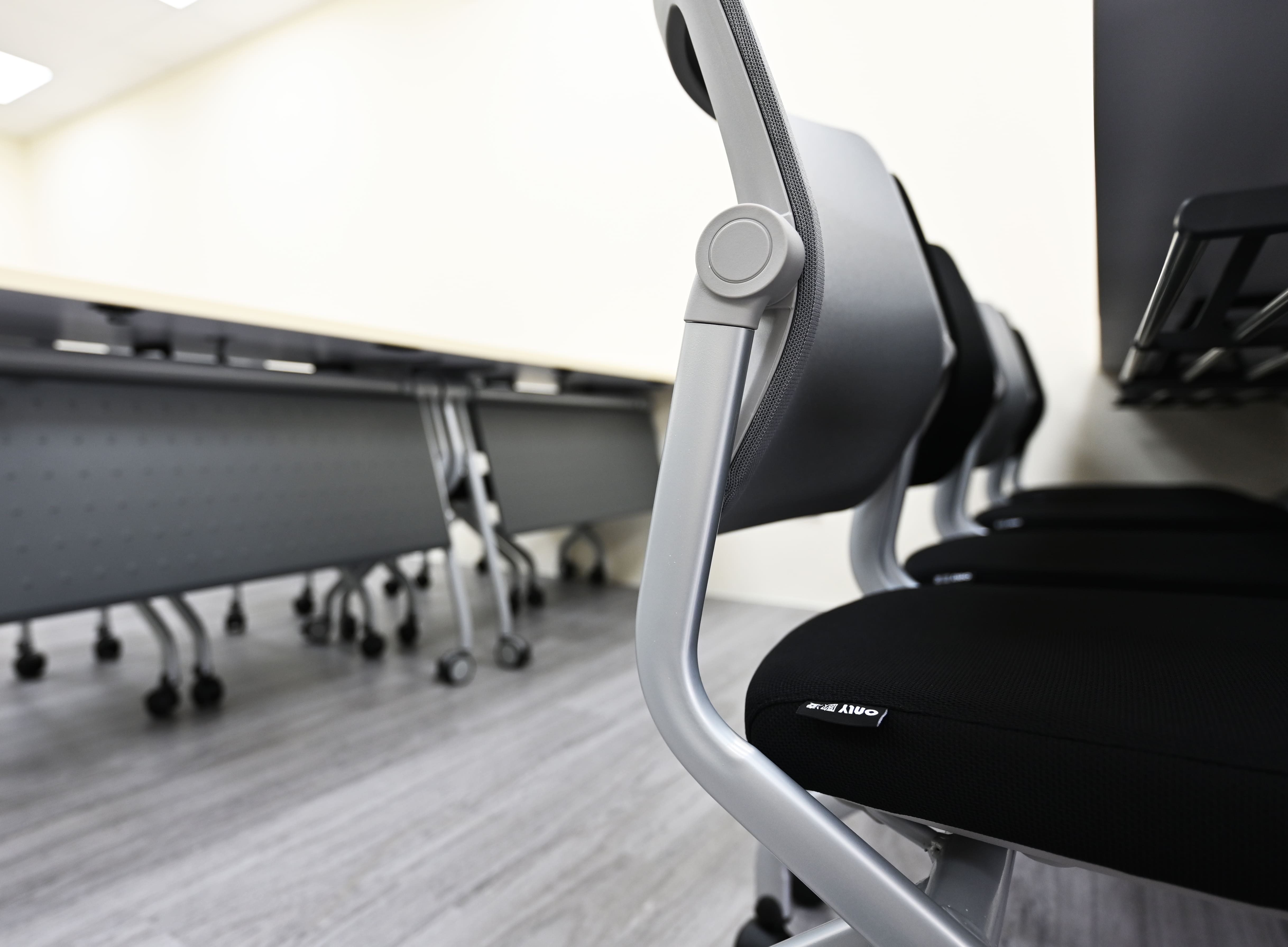椅背可微傾仰,協助連續上課的同學真正擁有人體工學的舒適坐感,找回正確的坐姿,搭配擁有專利隱藏折合與連結機能的