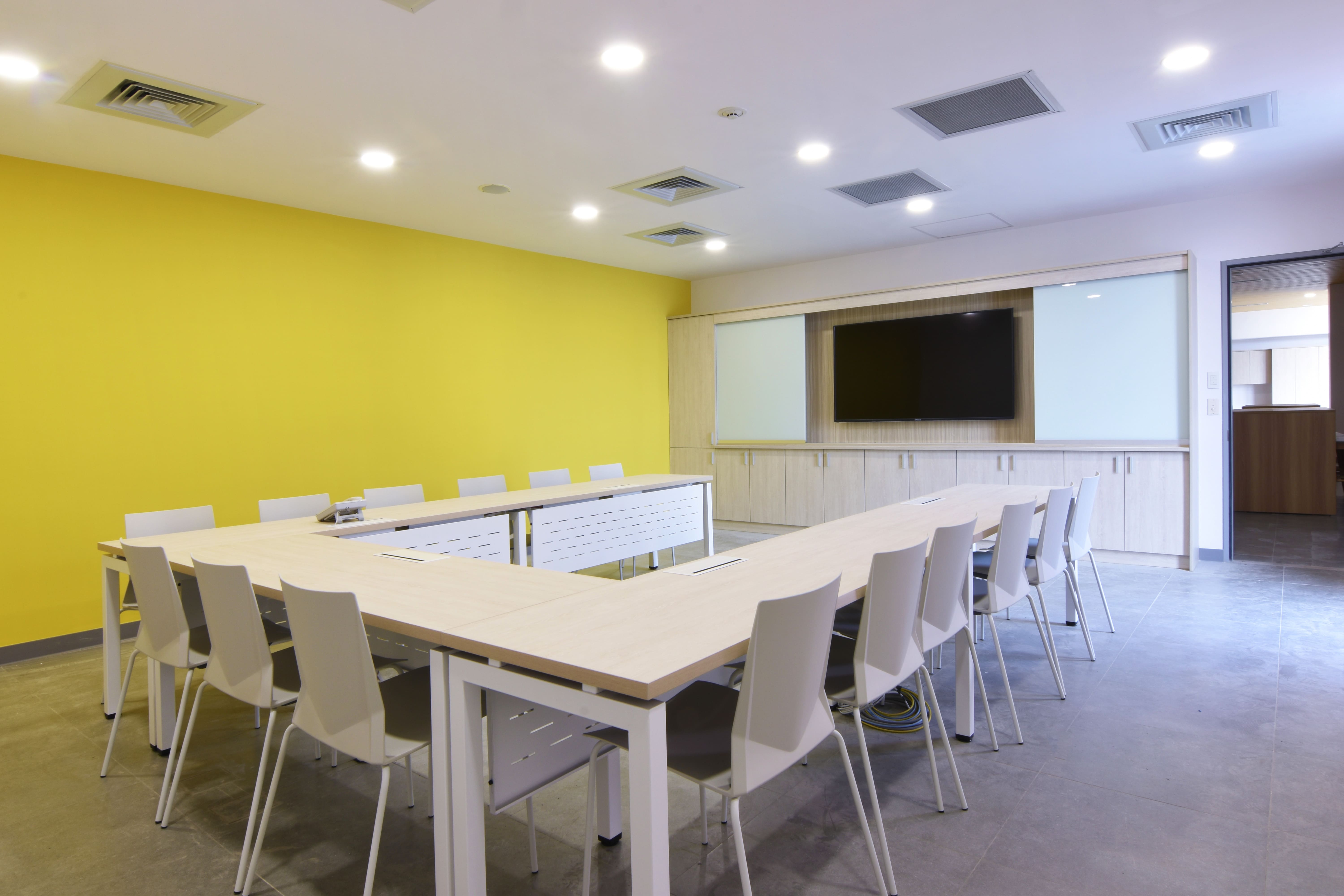 活潑的主題配色讓一成不變的會議室煥然一新;在完整溝通及考量使用者需求,如咖啡廳般的休閒交誼區、高機動性能隨意組合的定製沙發,白色、淺色木紋的