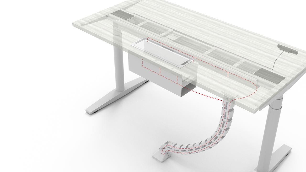 Standard formula cable management chain, one chain under the table, lifting without cable pulling.