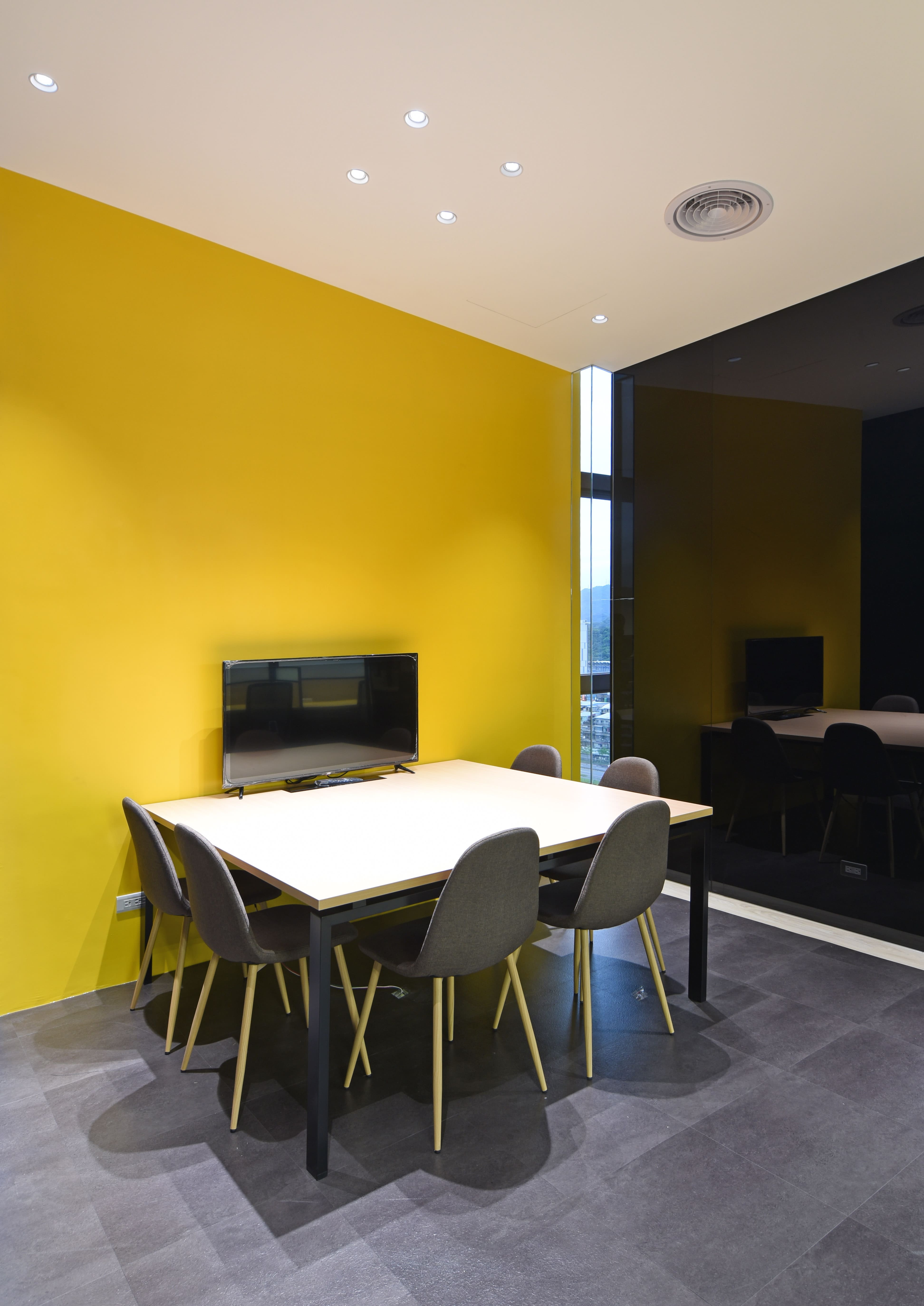 了解屋況與設計師的工業風風格後,在最短的時間與業主討論出最佳的OA方案。屏風的高低連結、搭配挑高空間與會議室的小房設計,線條感簡約不遮擋視線;落地窗前的高吧桌椅充分體現現代共享辦公形態,在工作時能隨時更換工作空間及調整狀態,同時擁有能放鬆思考的空間。
