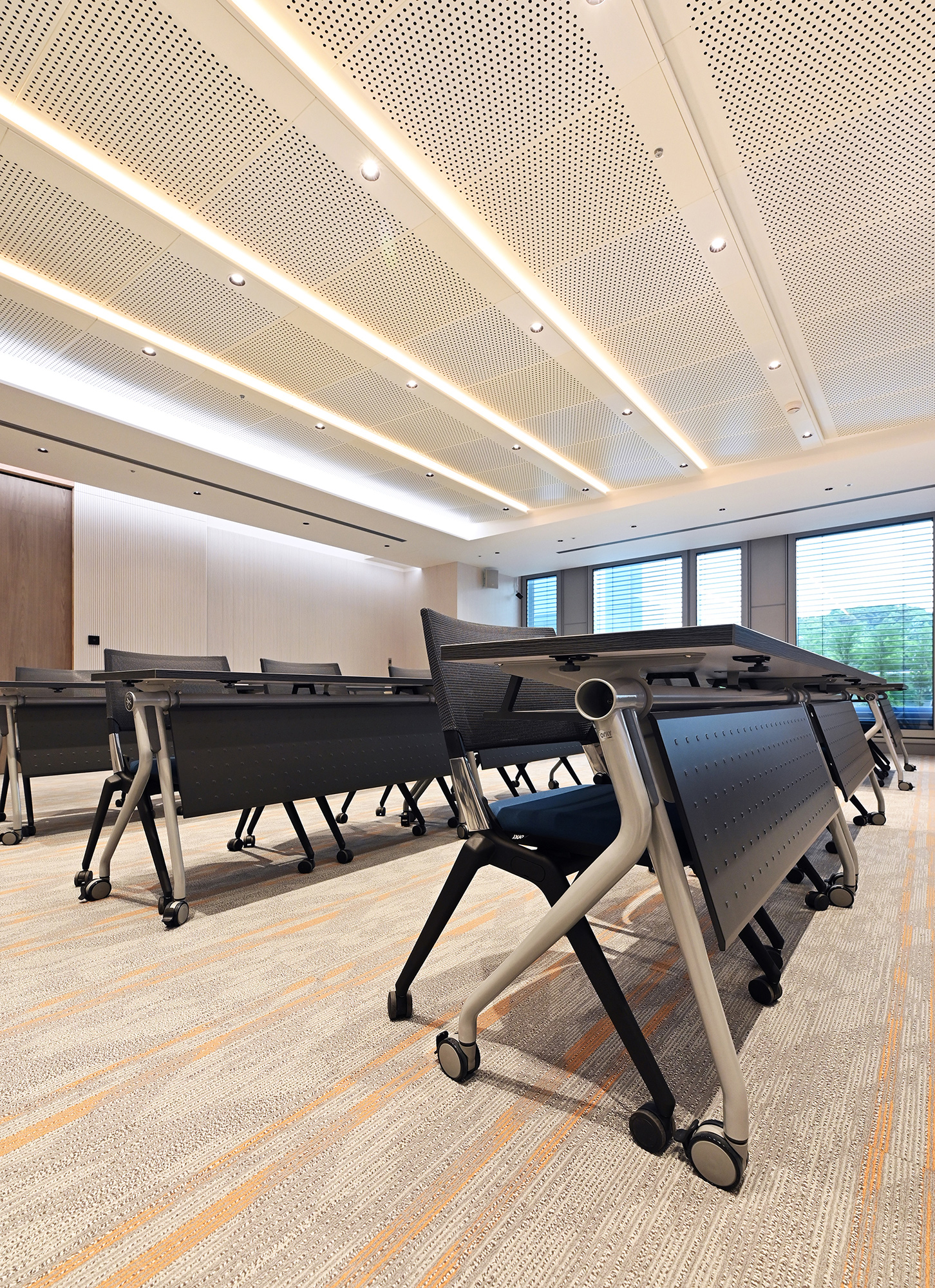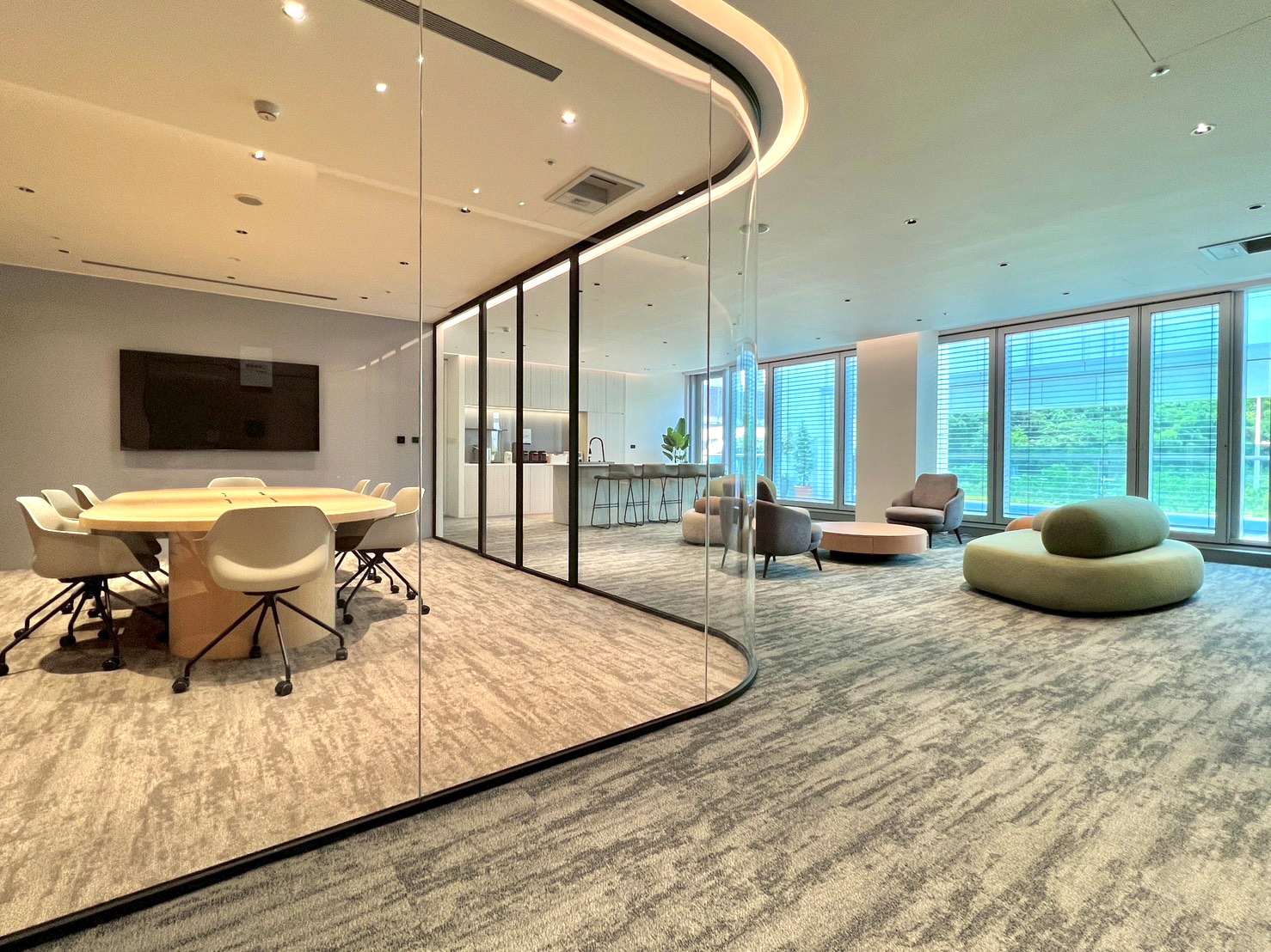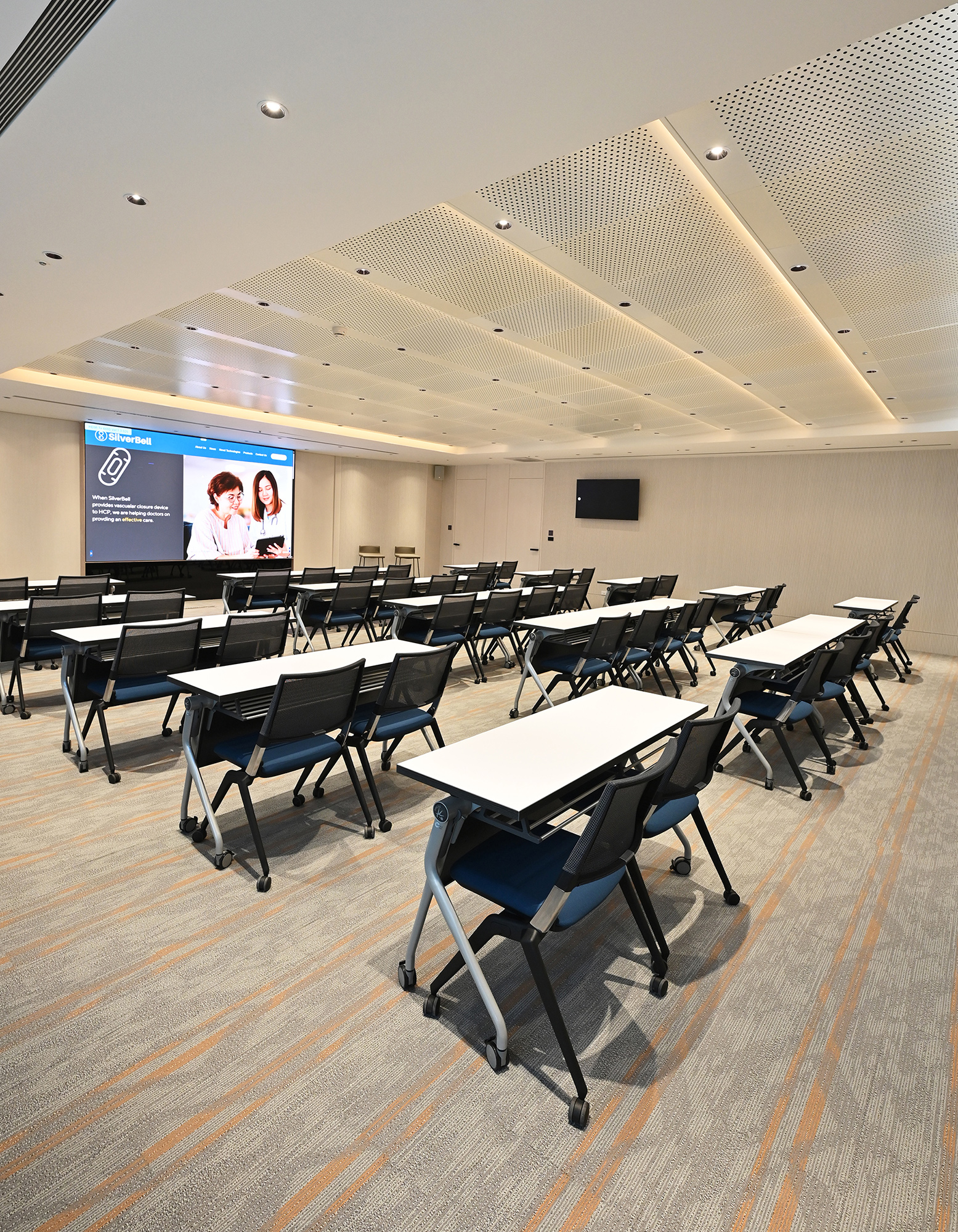 此次案場為專業醫療儀器公司用沉穩的灰色調搭配歐凌的NP3掀合桌及SCHOLAR培訓椅,用簡約的配色讓整體環境時尚、專業。