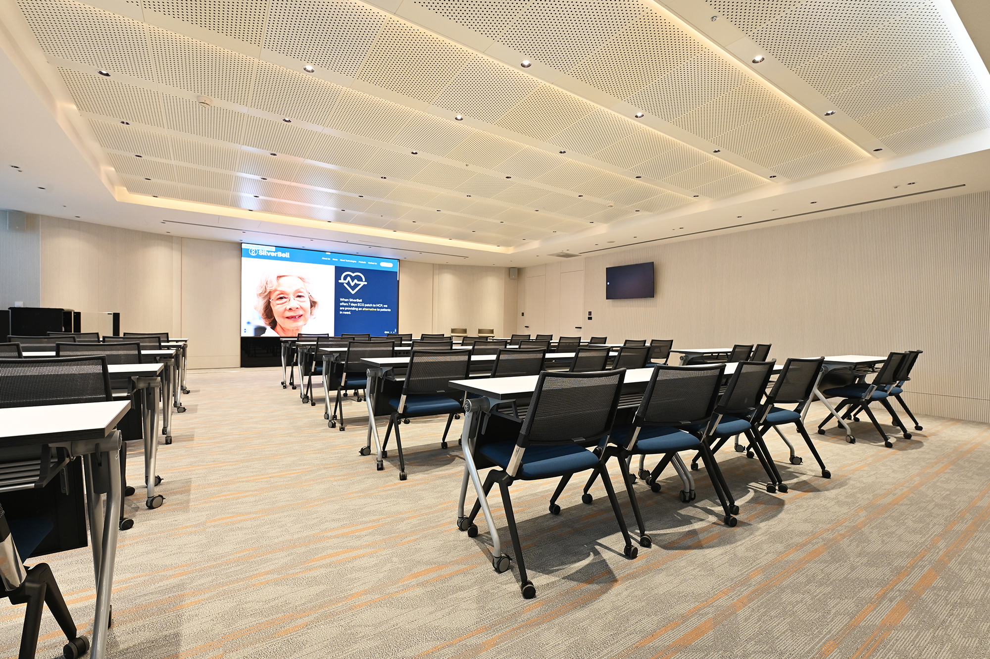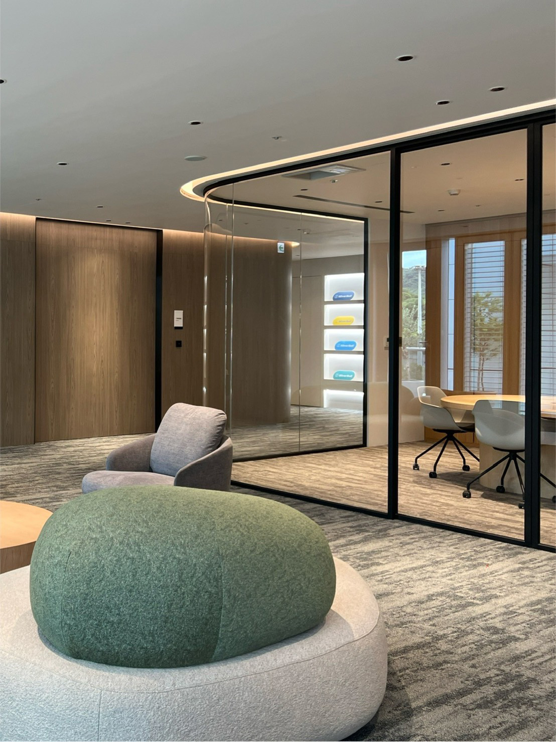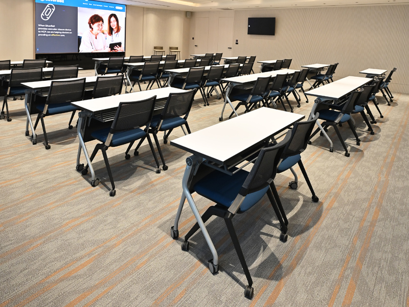 此次案場為專業醫療儀器公司用沉穩的灰色調搭配歐凌的NP3掀合桌及SCHOLAR培訓椅,用簡約的配色讓整體環境時尚、專業。