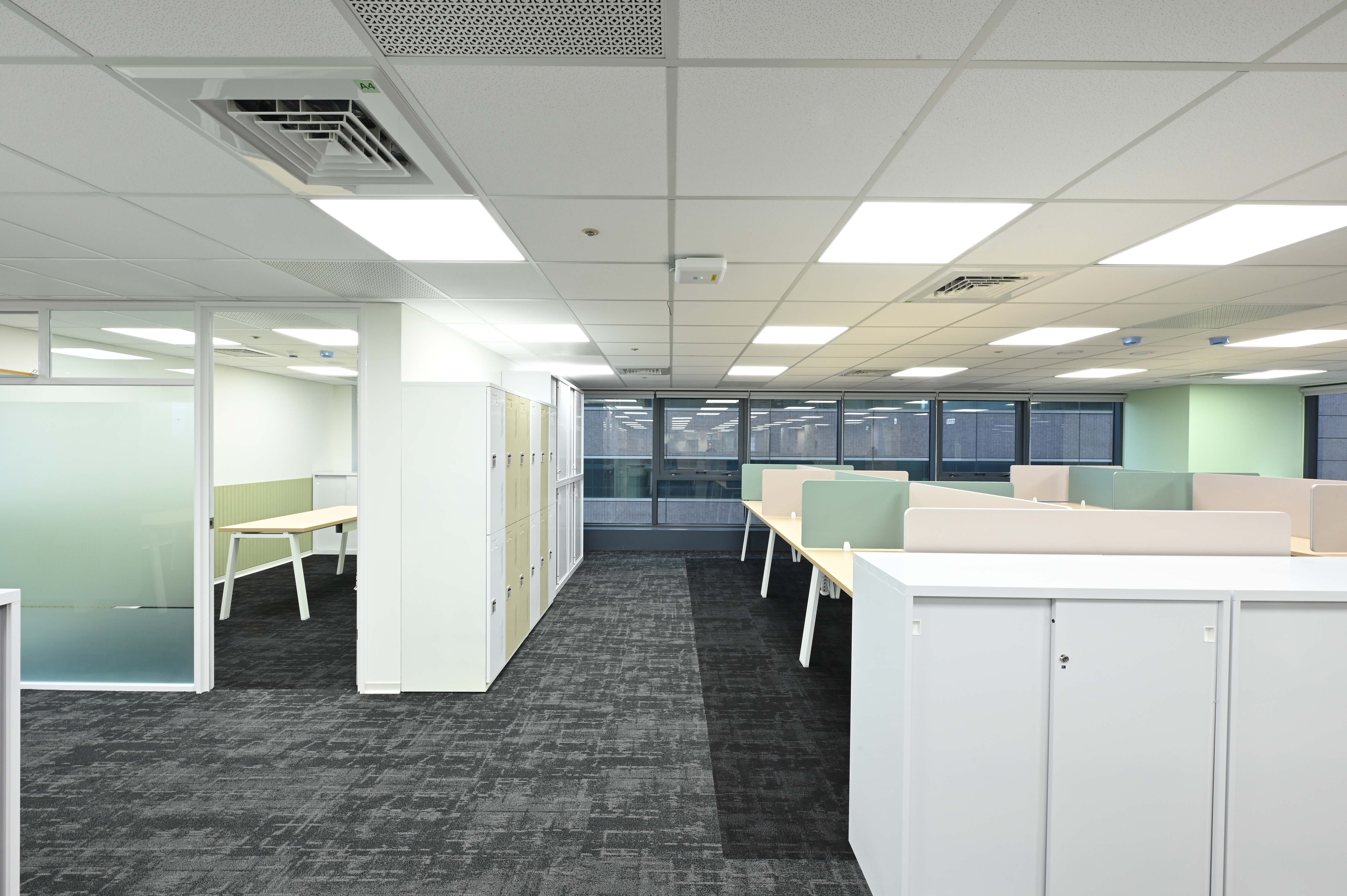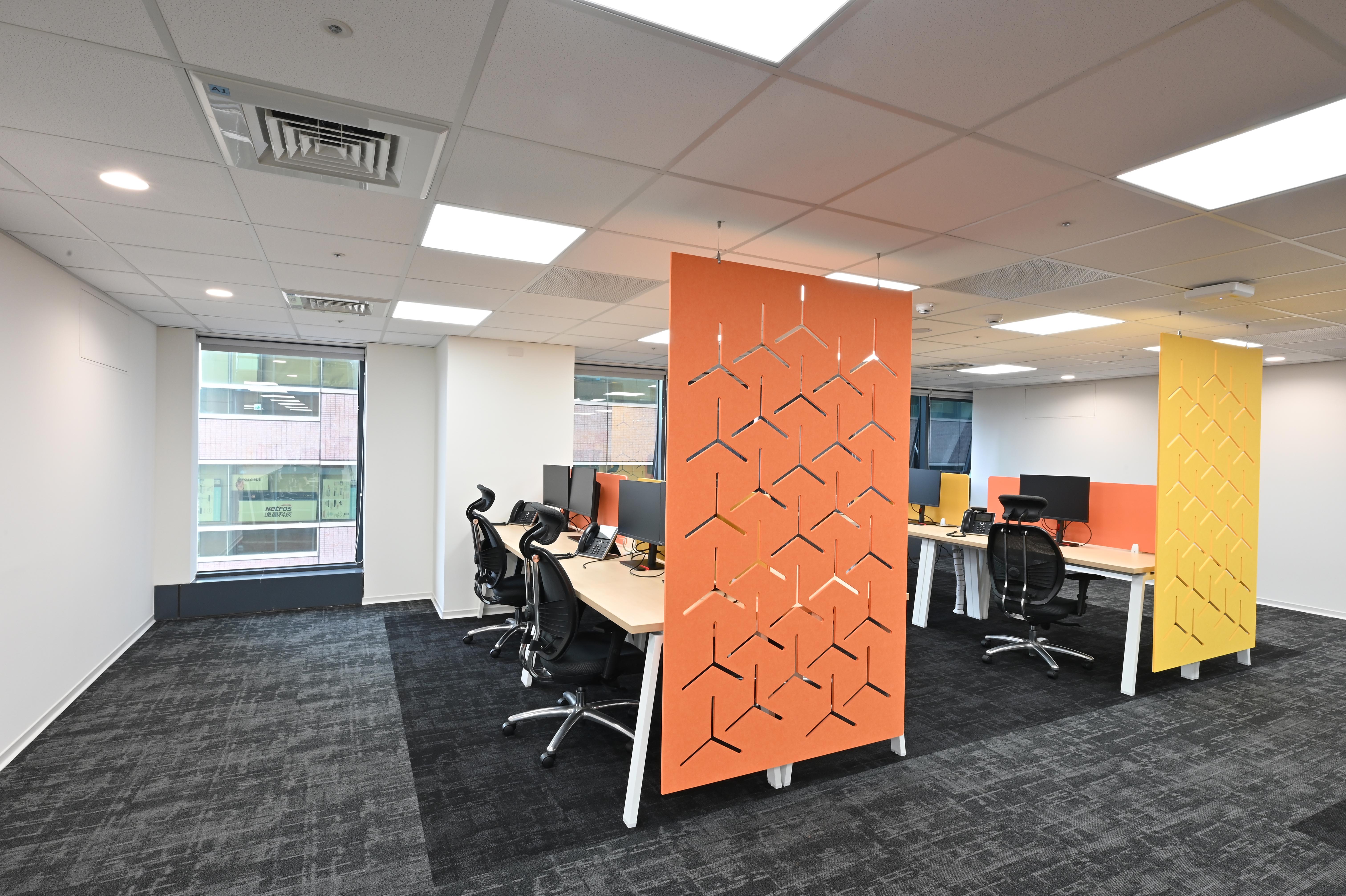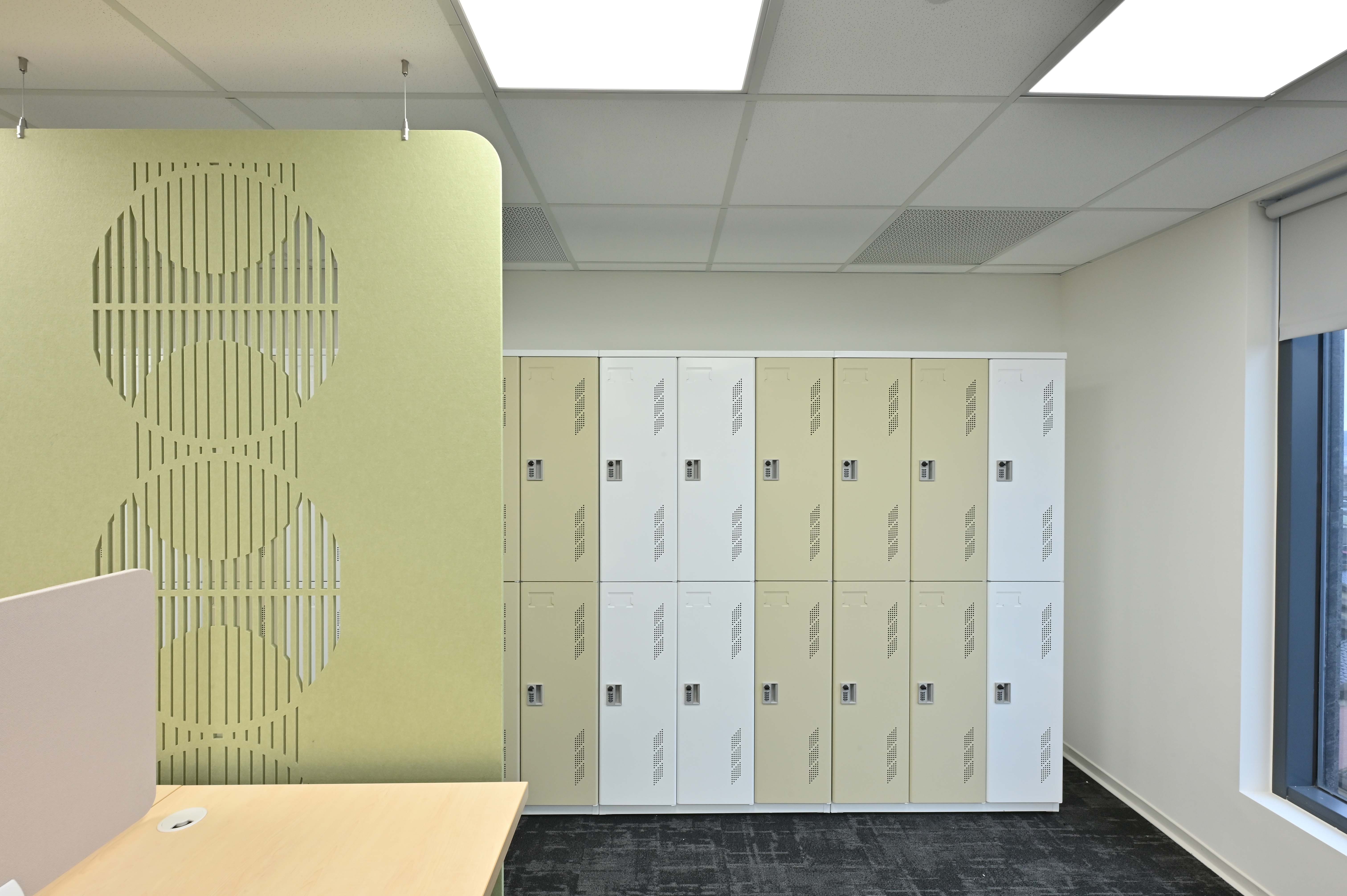 同時,桌上隔屏與吸音隔屏的顏色風格相互搭配,加上訂製的鐵櫃,不僅提供了充分的儲物空間,還營造出了一個統一而舒適的工作環境。本案的設計方案既考慮了工作效率和隱私保護,又注重了整體空間的美感和風格。