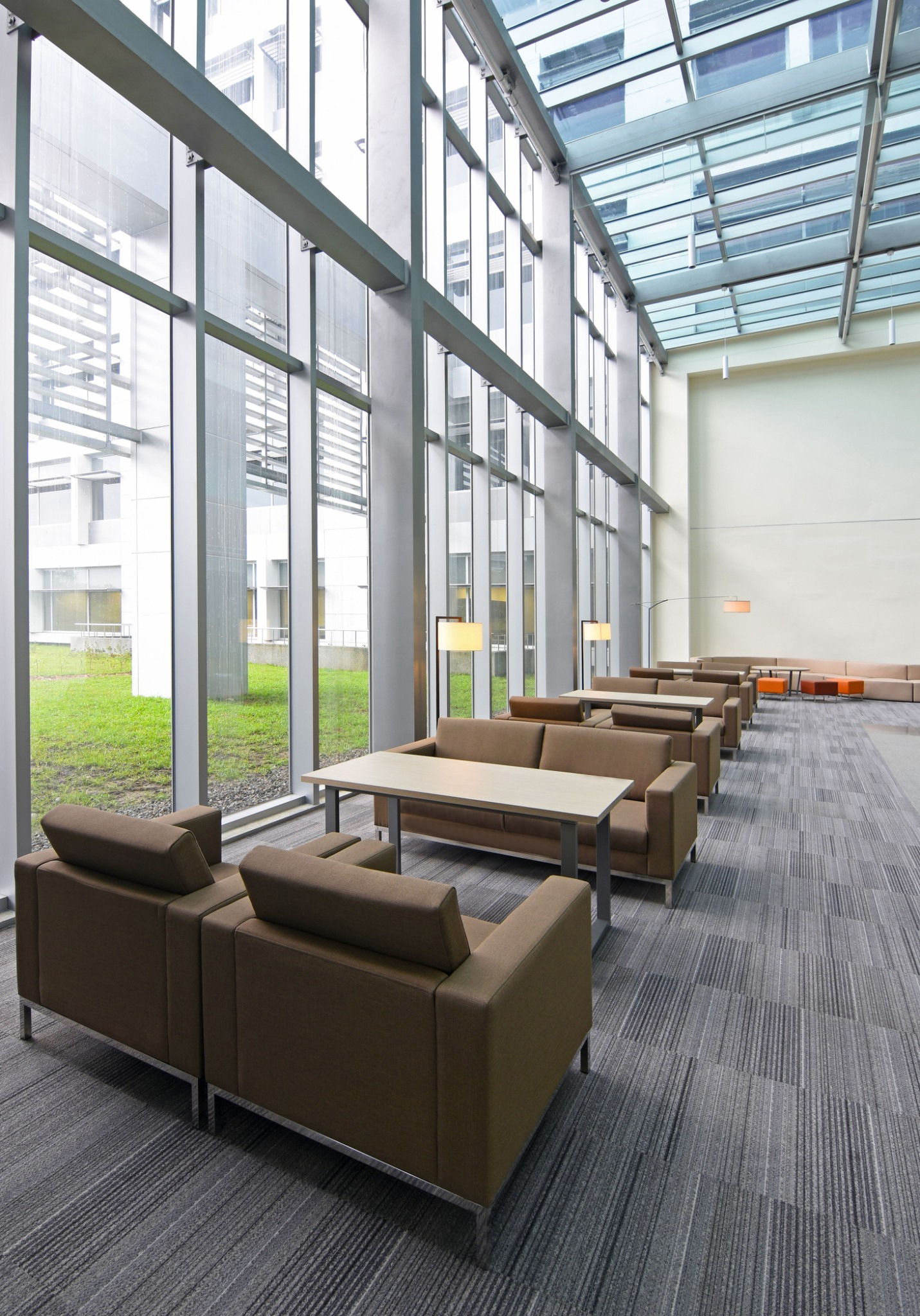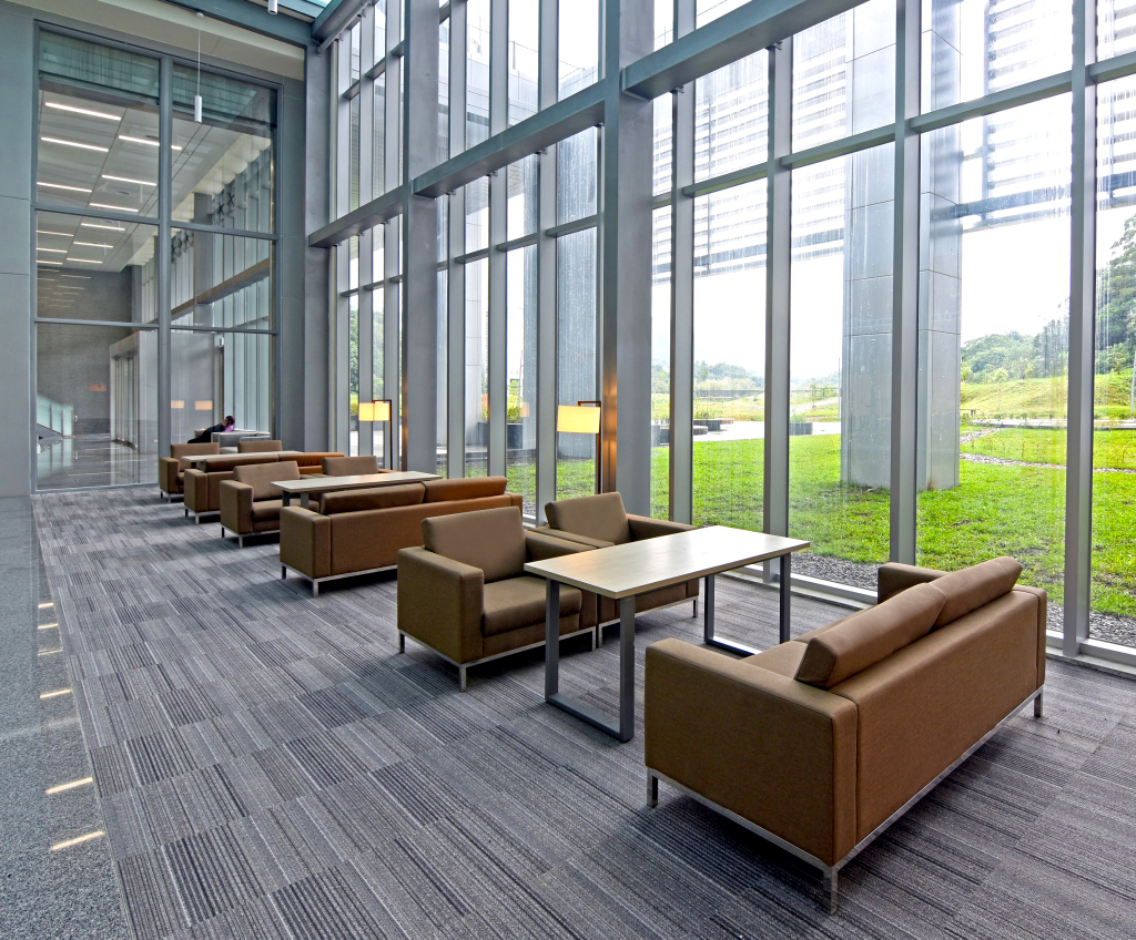園區內部各單位各有不同需求,針對不同使用者需求配置適合的家具,同時要求展現專業沉穩的視覺效果。辦公空間以大地色、木紋、純色為主調,屏風工作站以立柱走線的方式,讓地面視覺更加簡潔俐落。公共區域充分表現共享空間的區塊設計,方便使用者小組討論、休憩等活動。