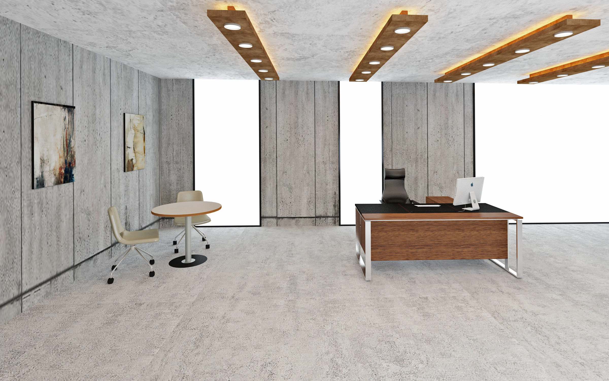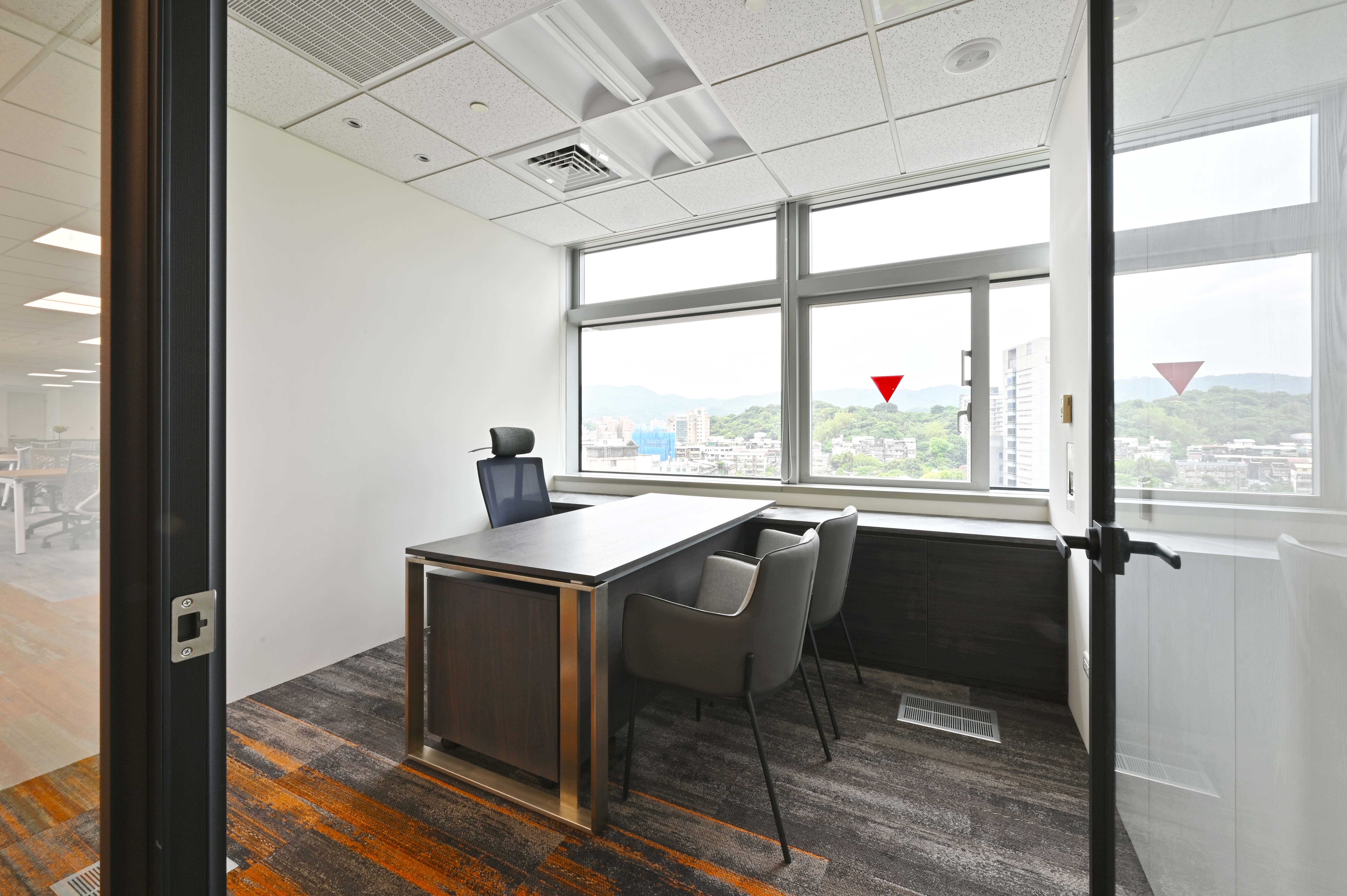 不鏽鋼高冷調性與木頭溫暖質感的異材質搭配呈現出完美比例,並展現與襯托高級主管的氣勢。