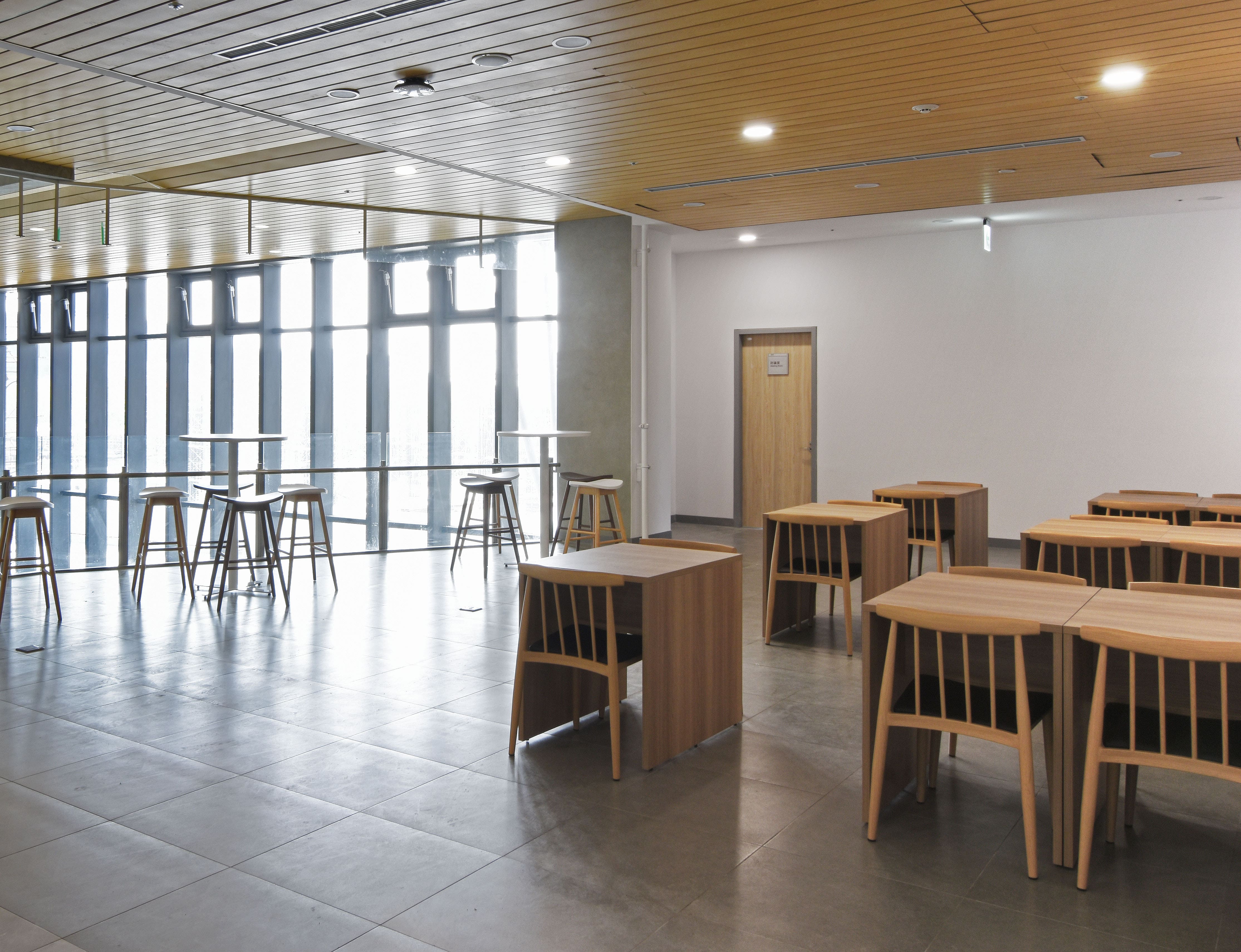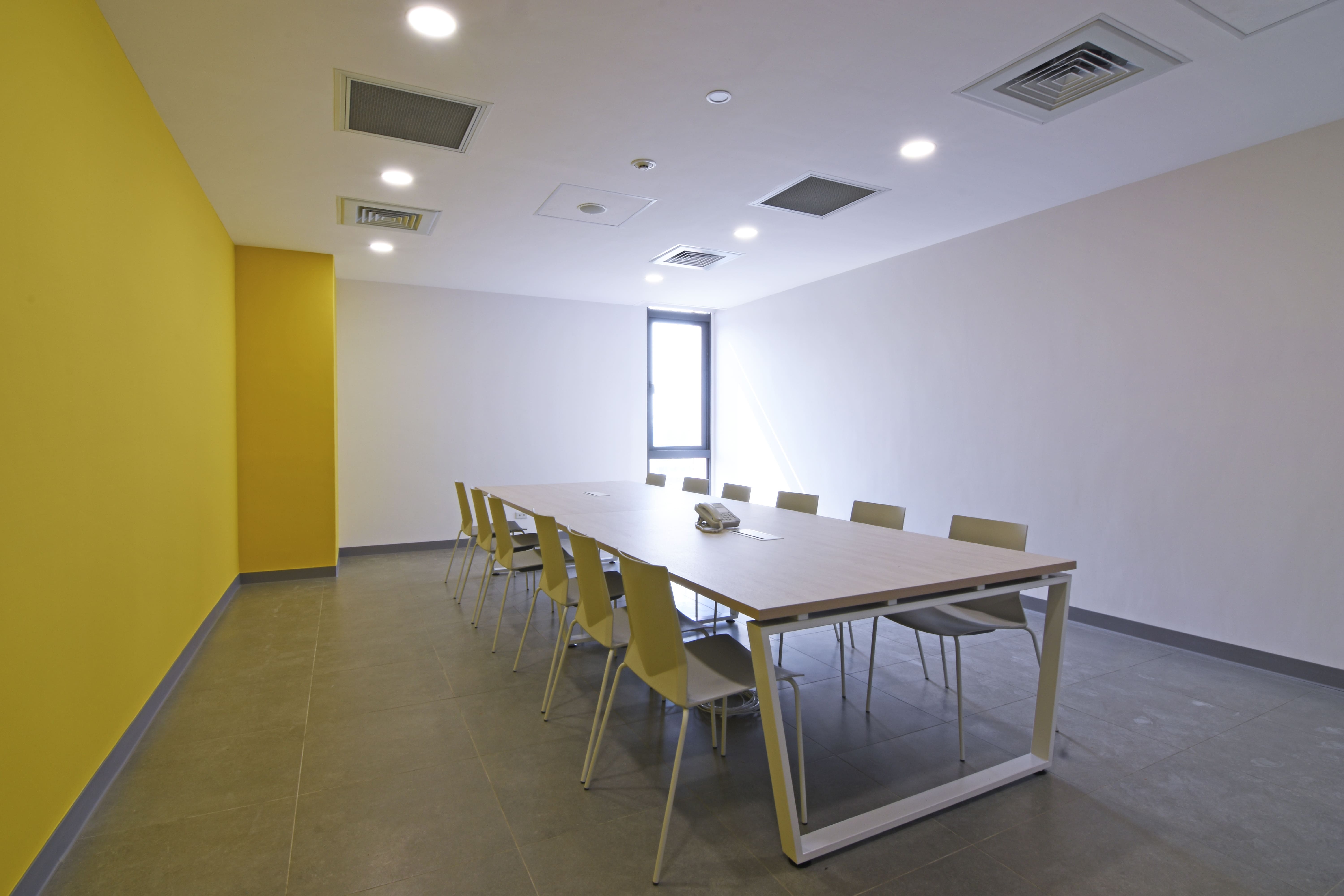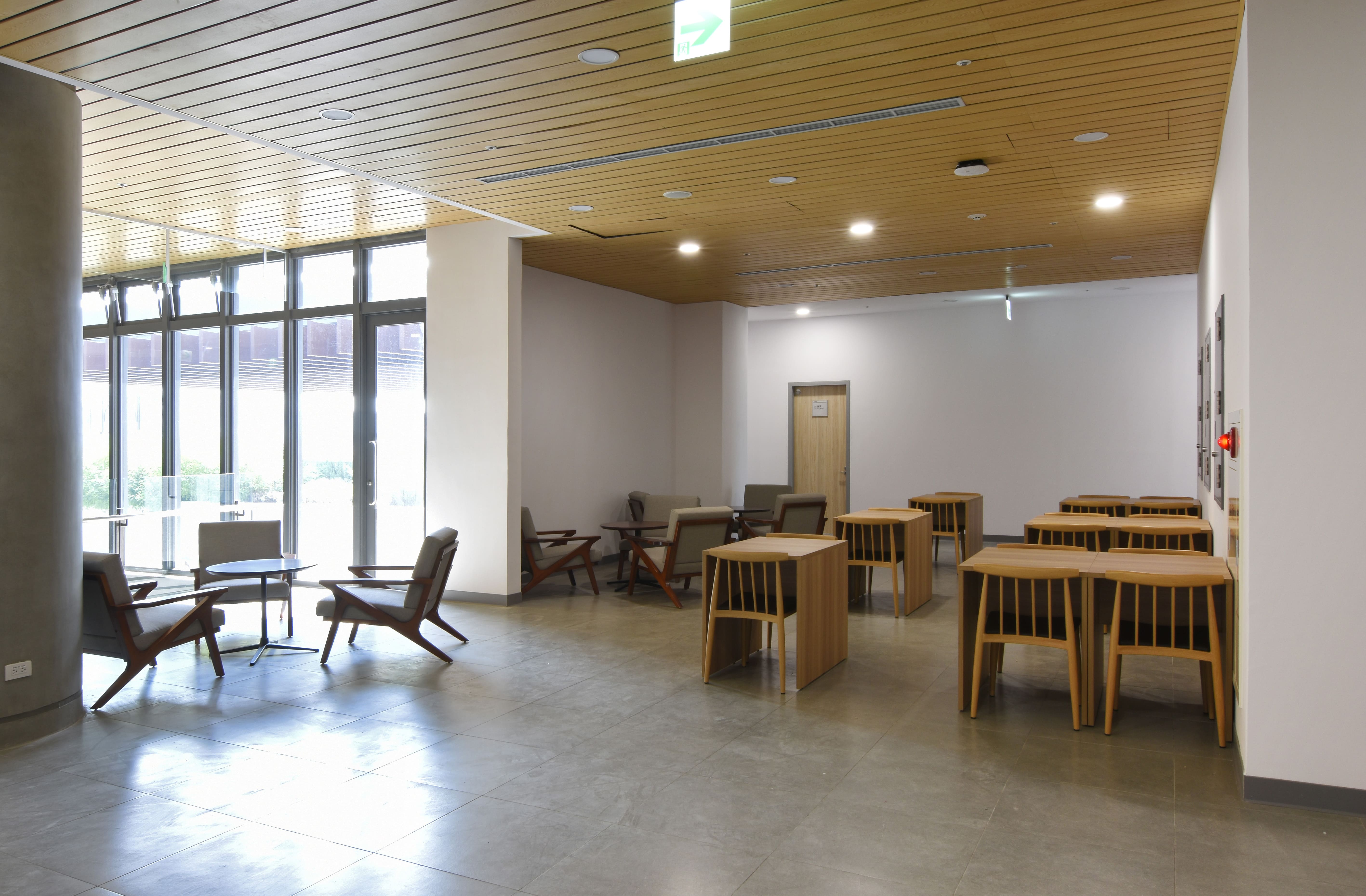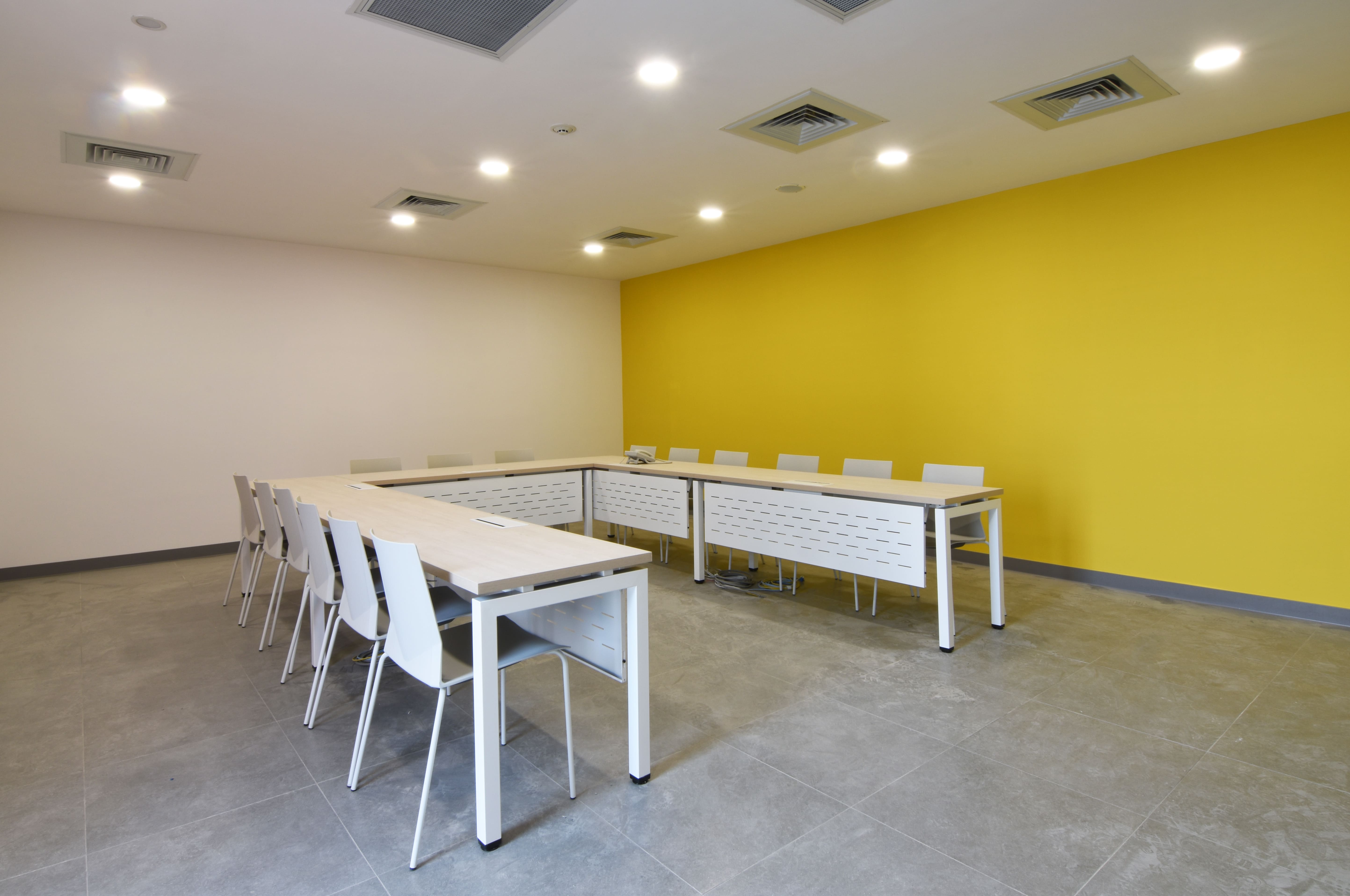 活潑的主題配色讓一成不變的會議室煥然一新;在完整溝通及考量使用者需求,如咖啡廳般的休閒交誼區、高機動性能隨意組合的定製沙發,白色、淺色木紋的