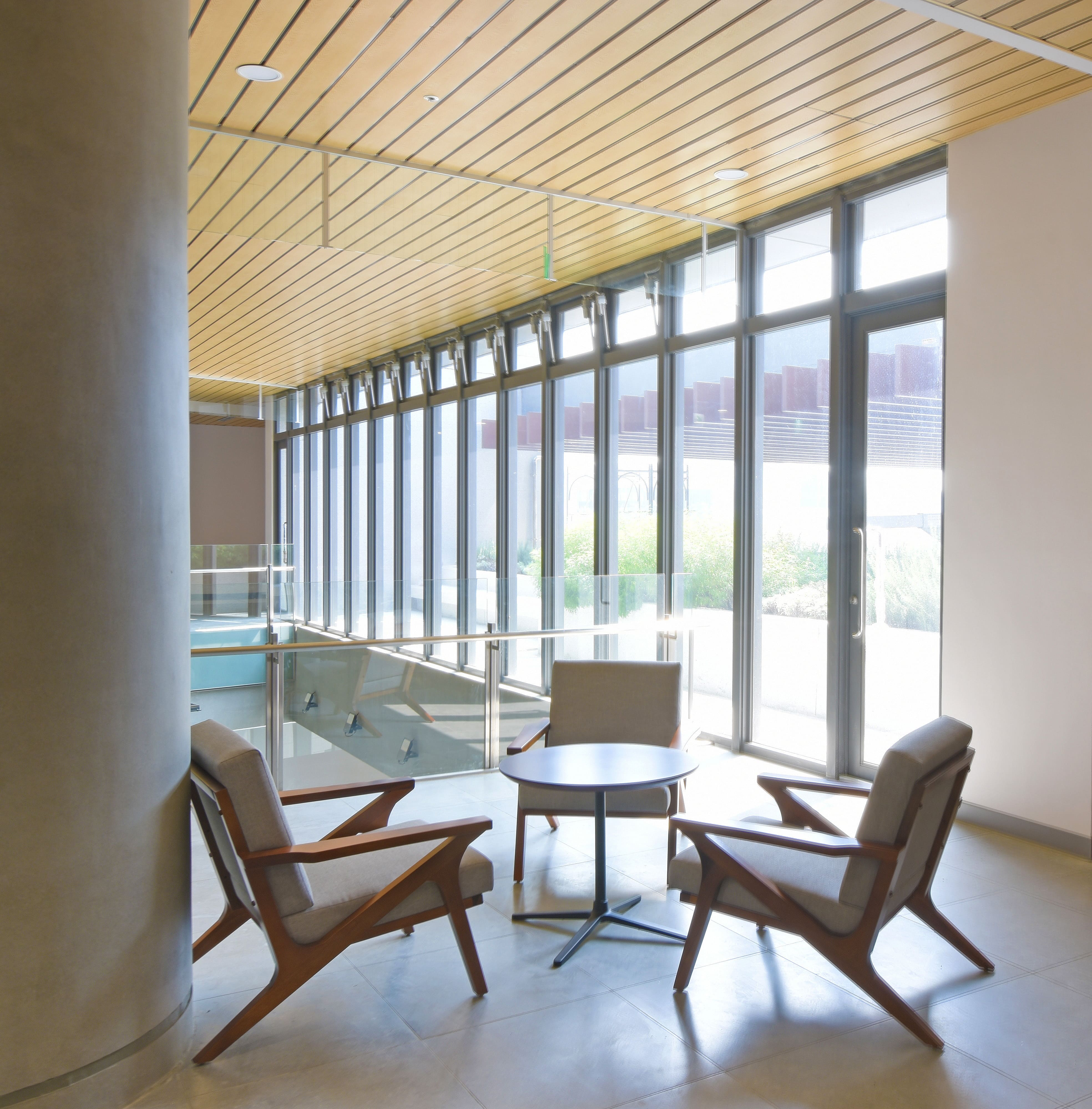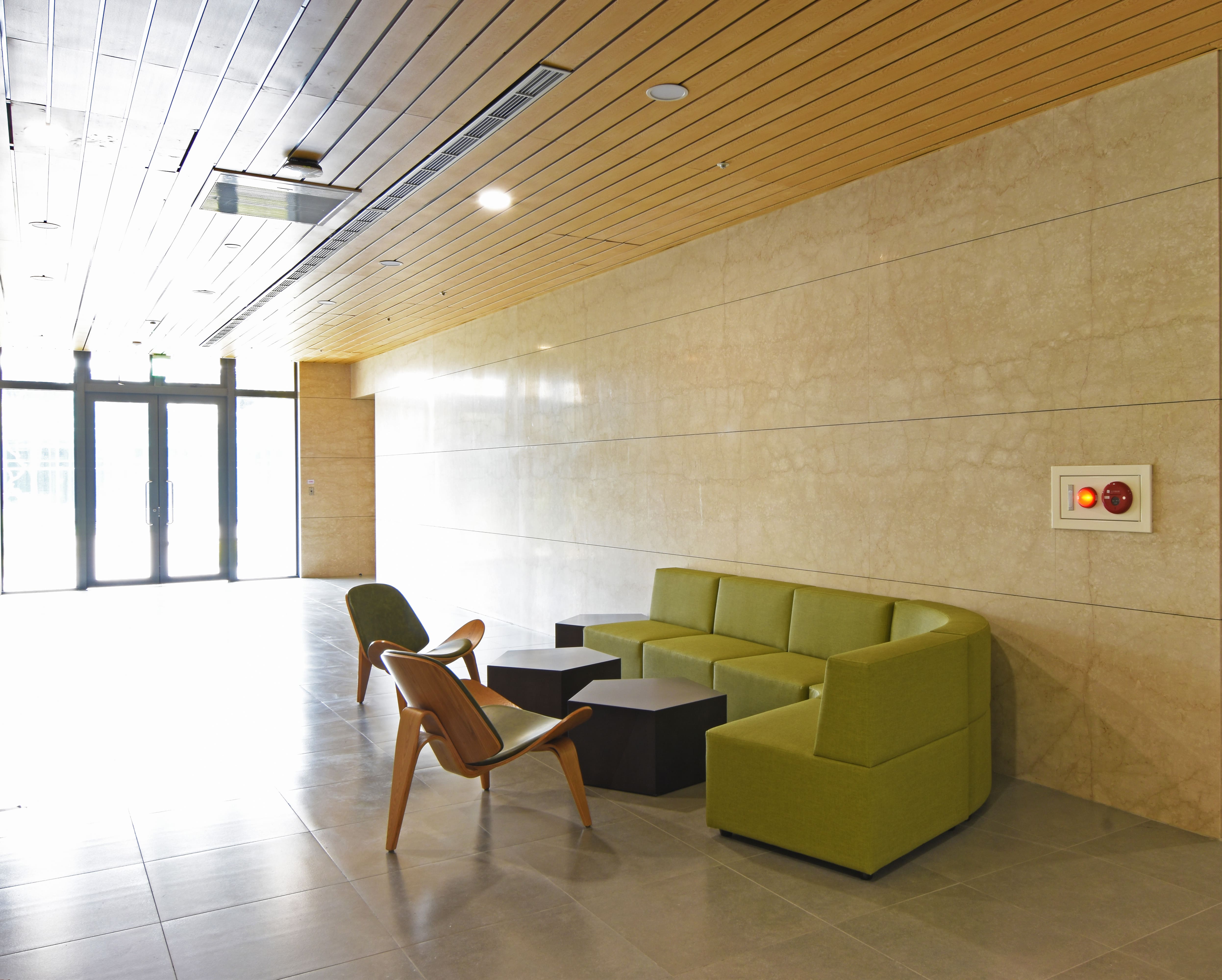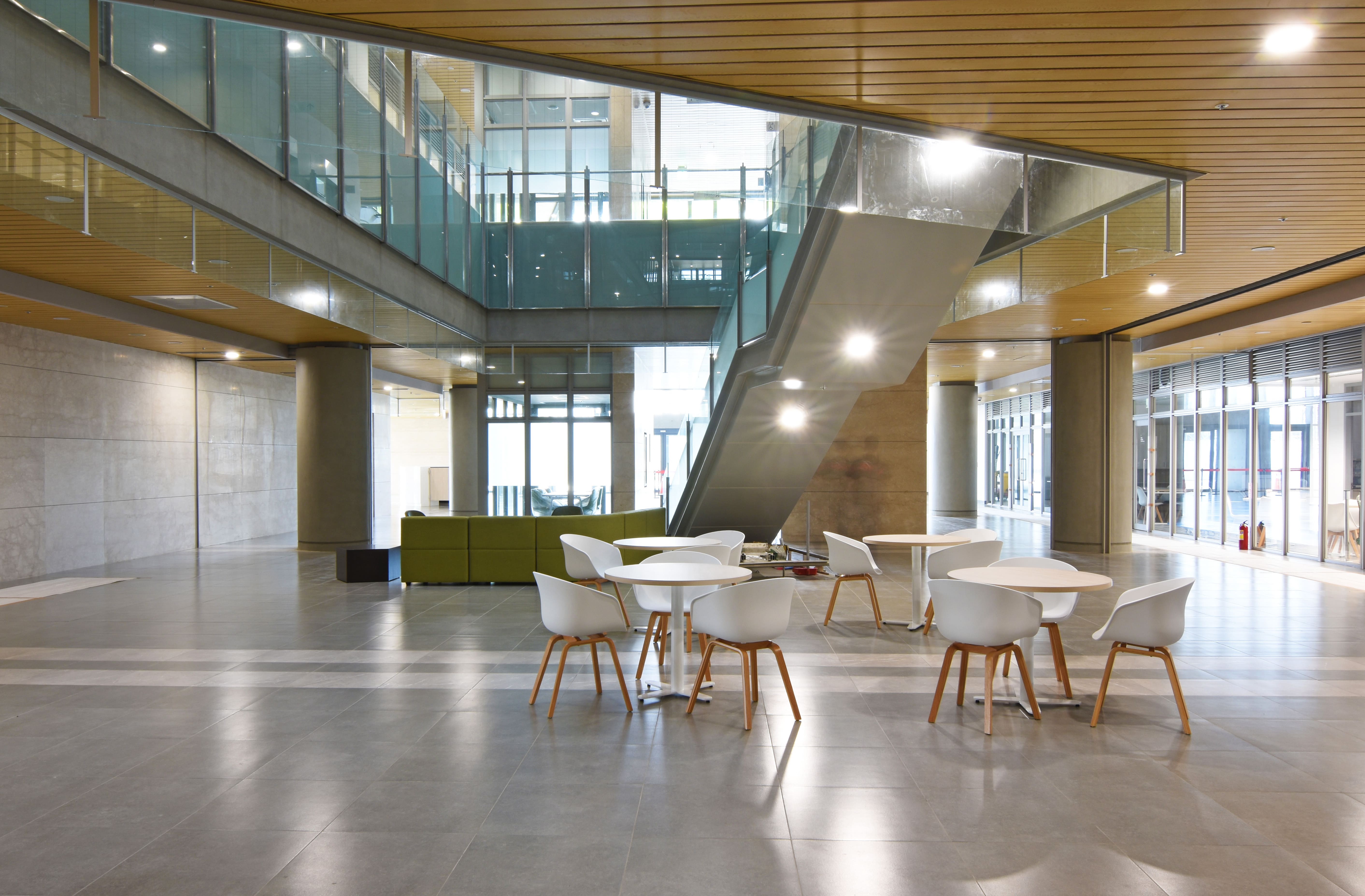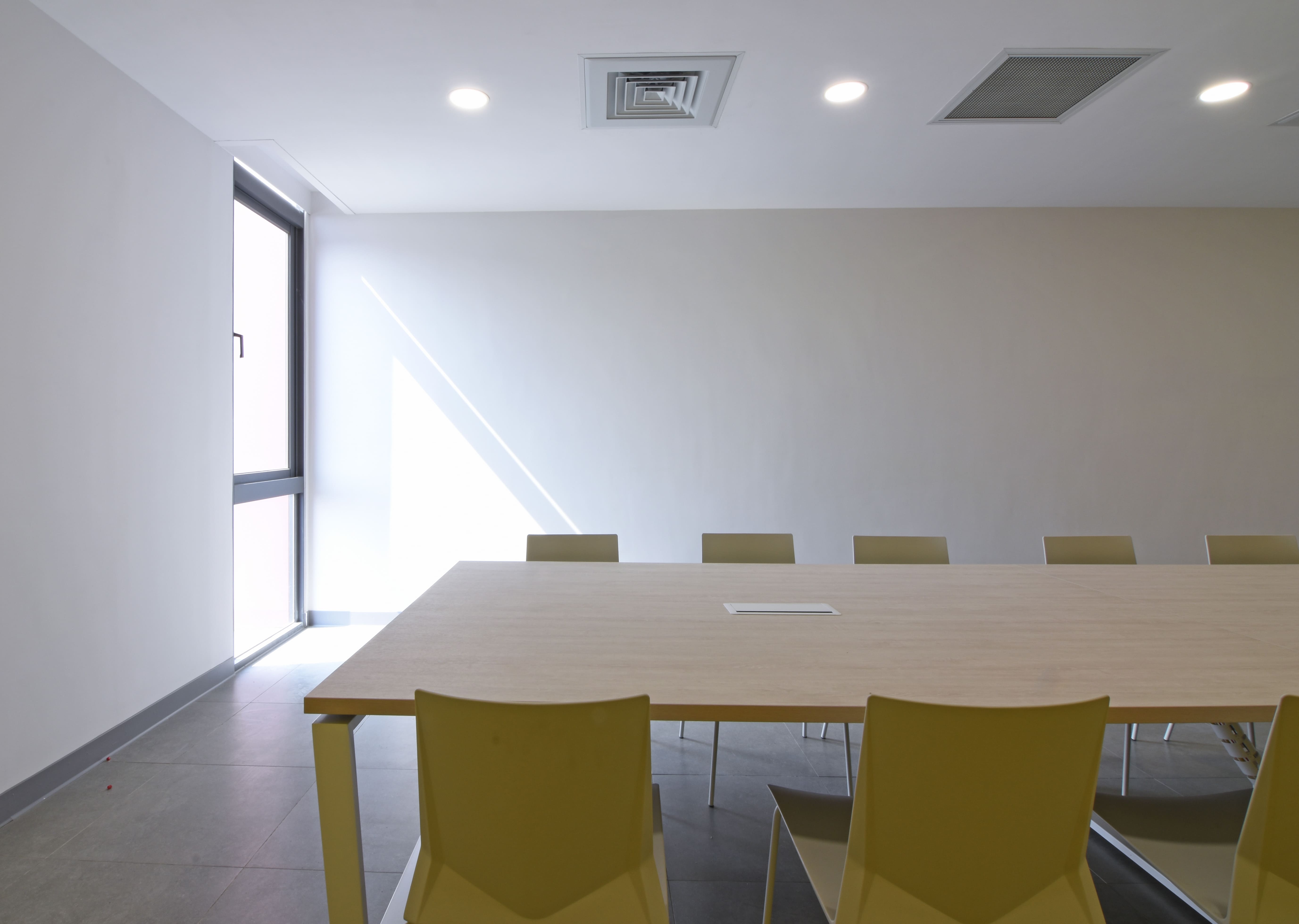 活潑的主題配色讓一成不變的會議室煥然一新;在完整溝通及考量使用者需求,如咖啡廳般的休閒交誼區、高機動性能隨意組合的定製沙發,白色、淺色木紋的
