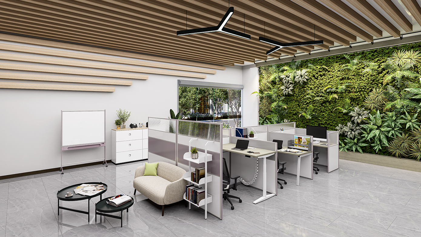有別於傳統屏風,降低收邊柱上蓋與收邊上蓋的高度,整體變纖薄扁平、營造時尚感。