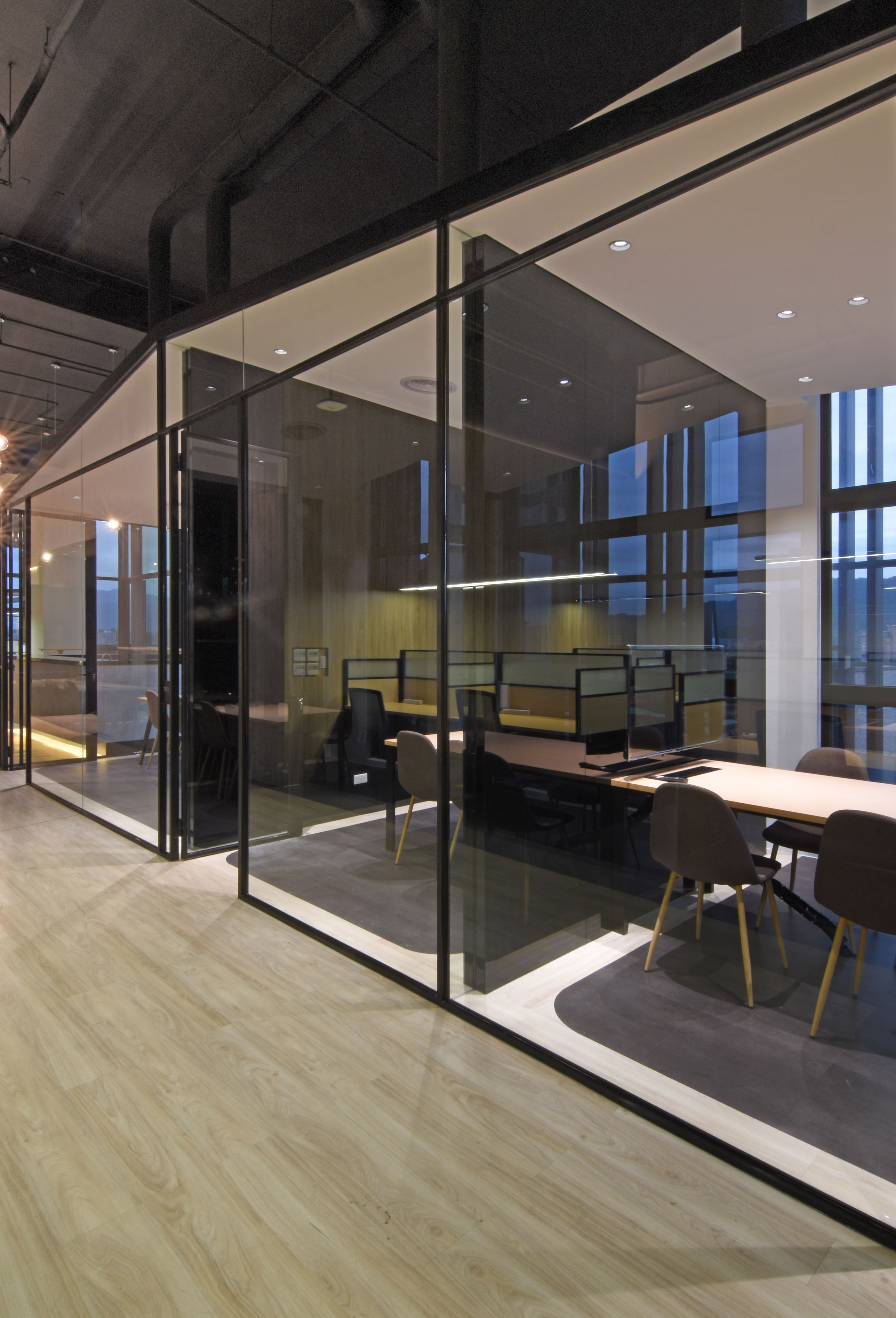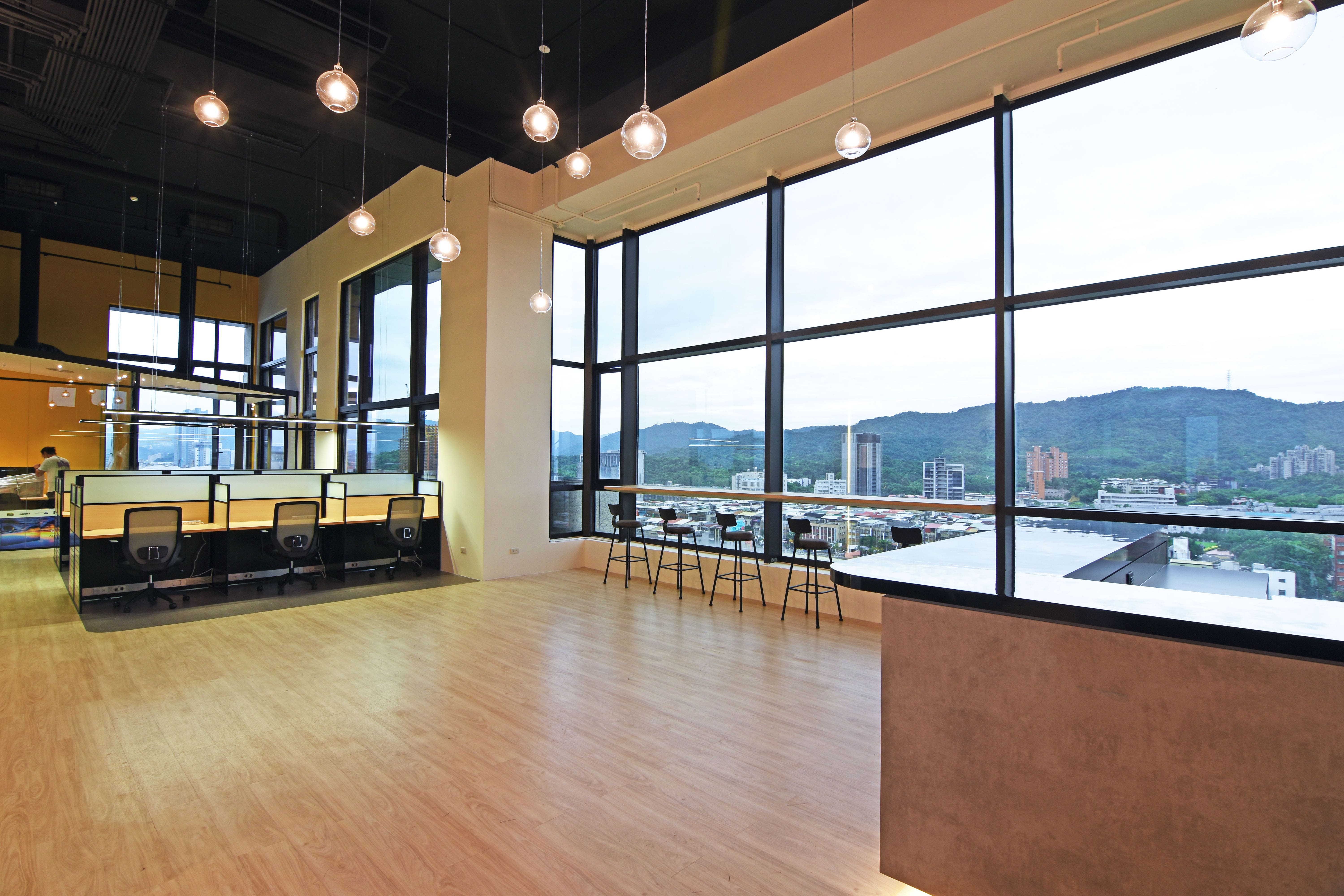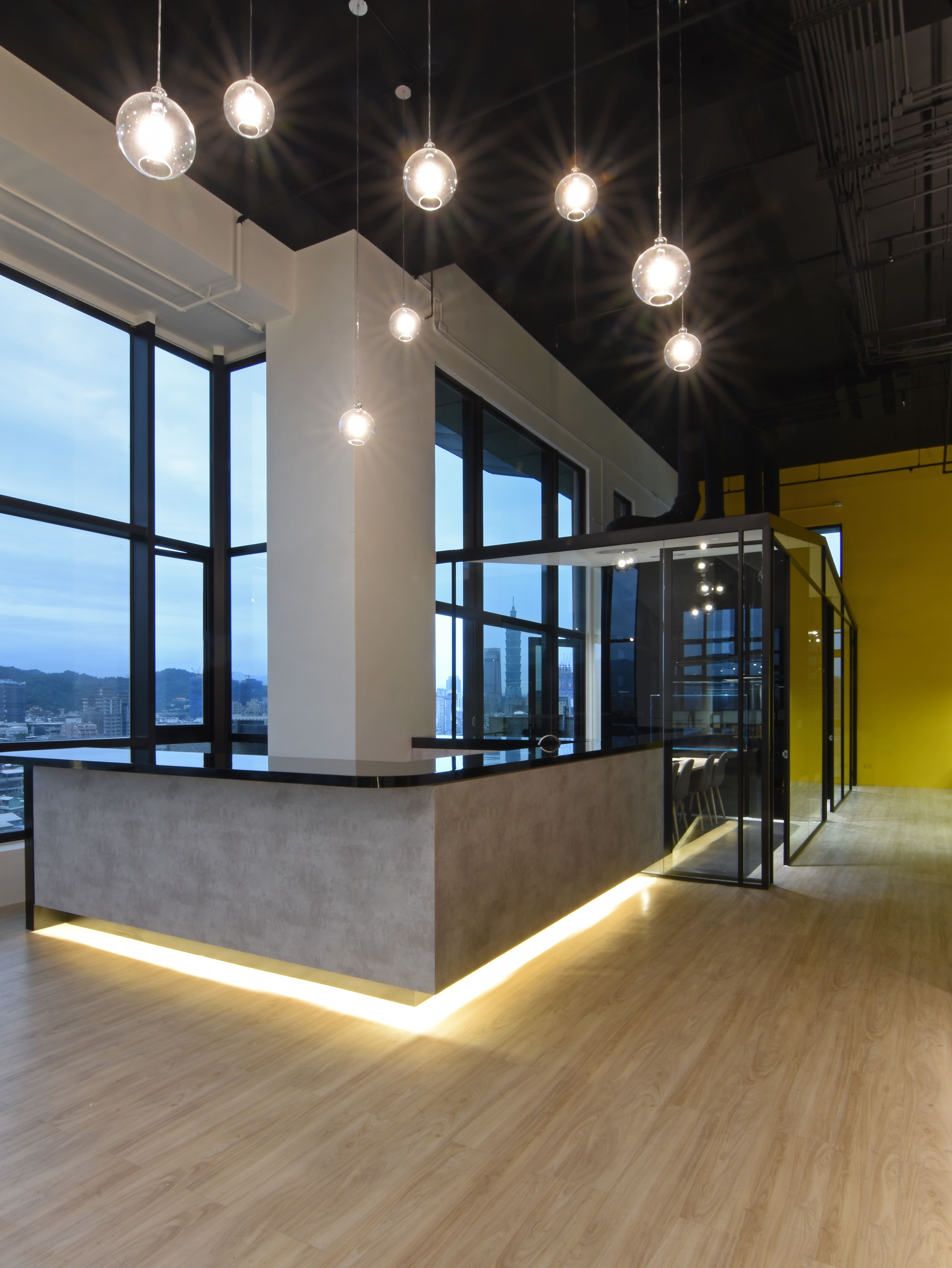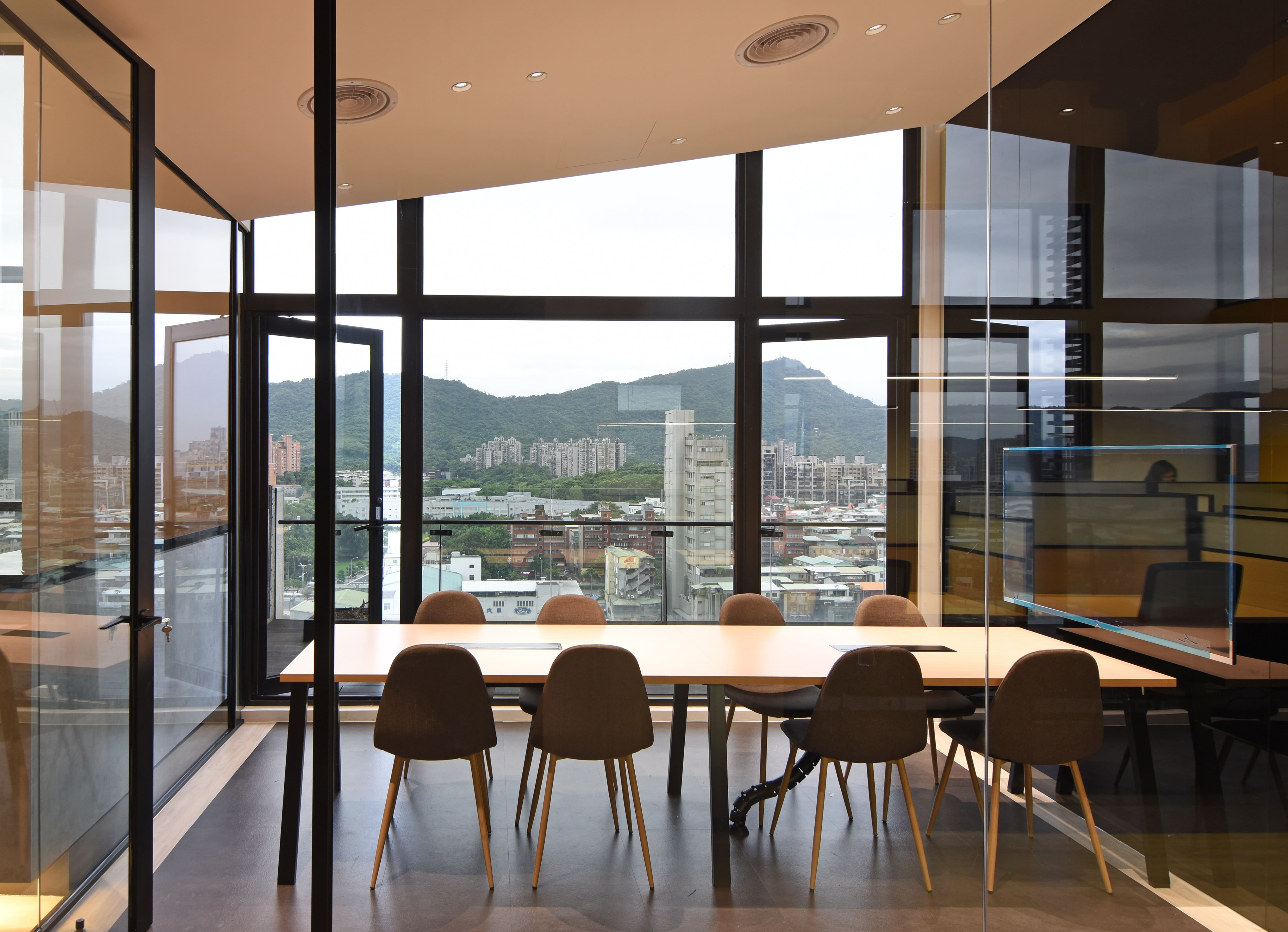 了解屋況與設計師的工業風風格後,在最短的時間與業主討論出最佳的OA方案。屏風的高低連結、搭配挑高空間與會議室的小房設計,線條感簡約不遮擋視線;落地窗前的高吧桌椅充分體現現代共享辦公形態,在工作時能隨時更換工作空間及調整狀態,同時擁有能放鬆思考的空間。