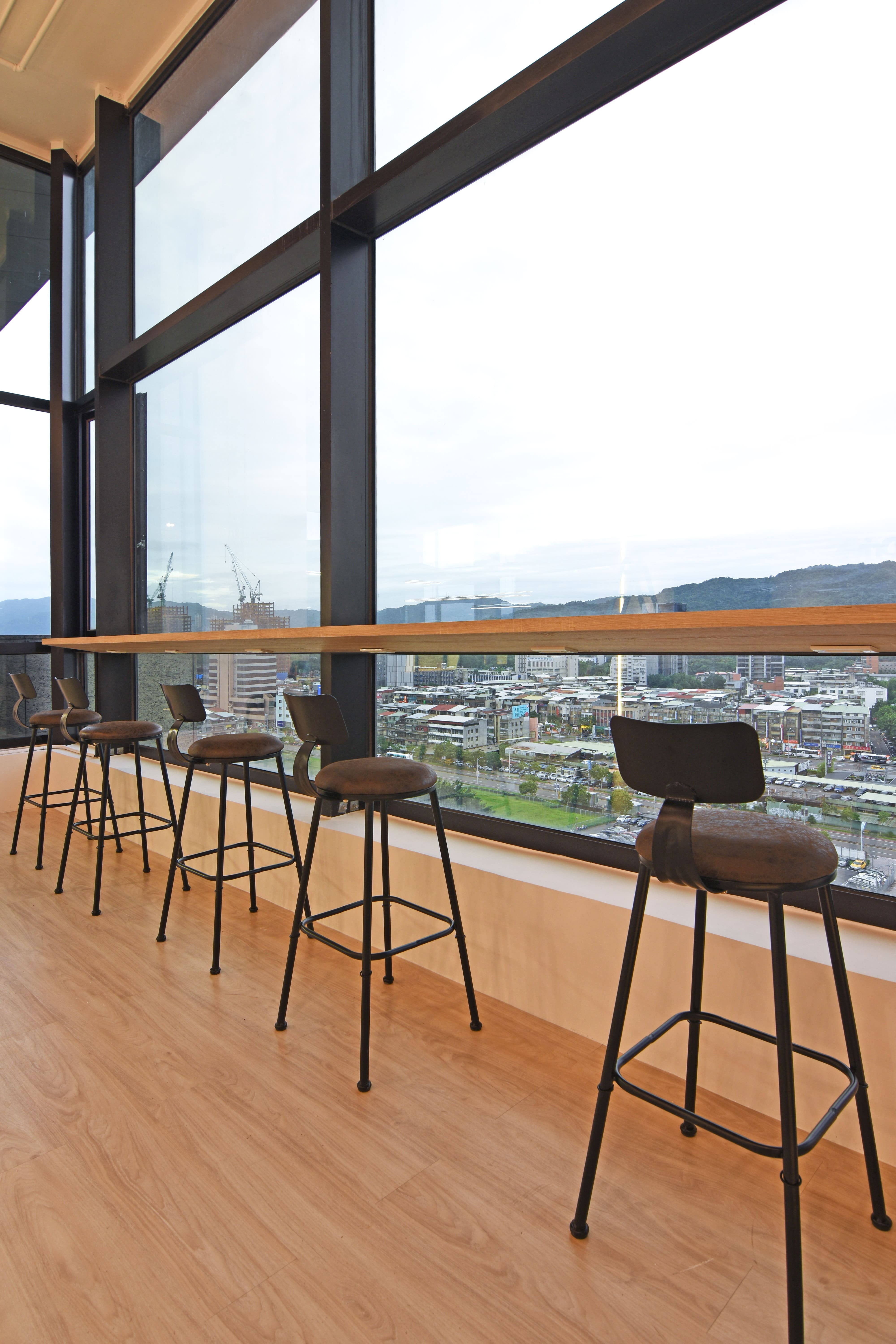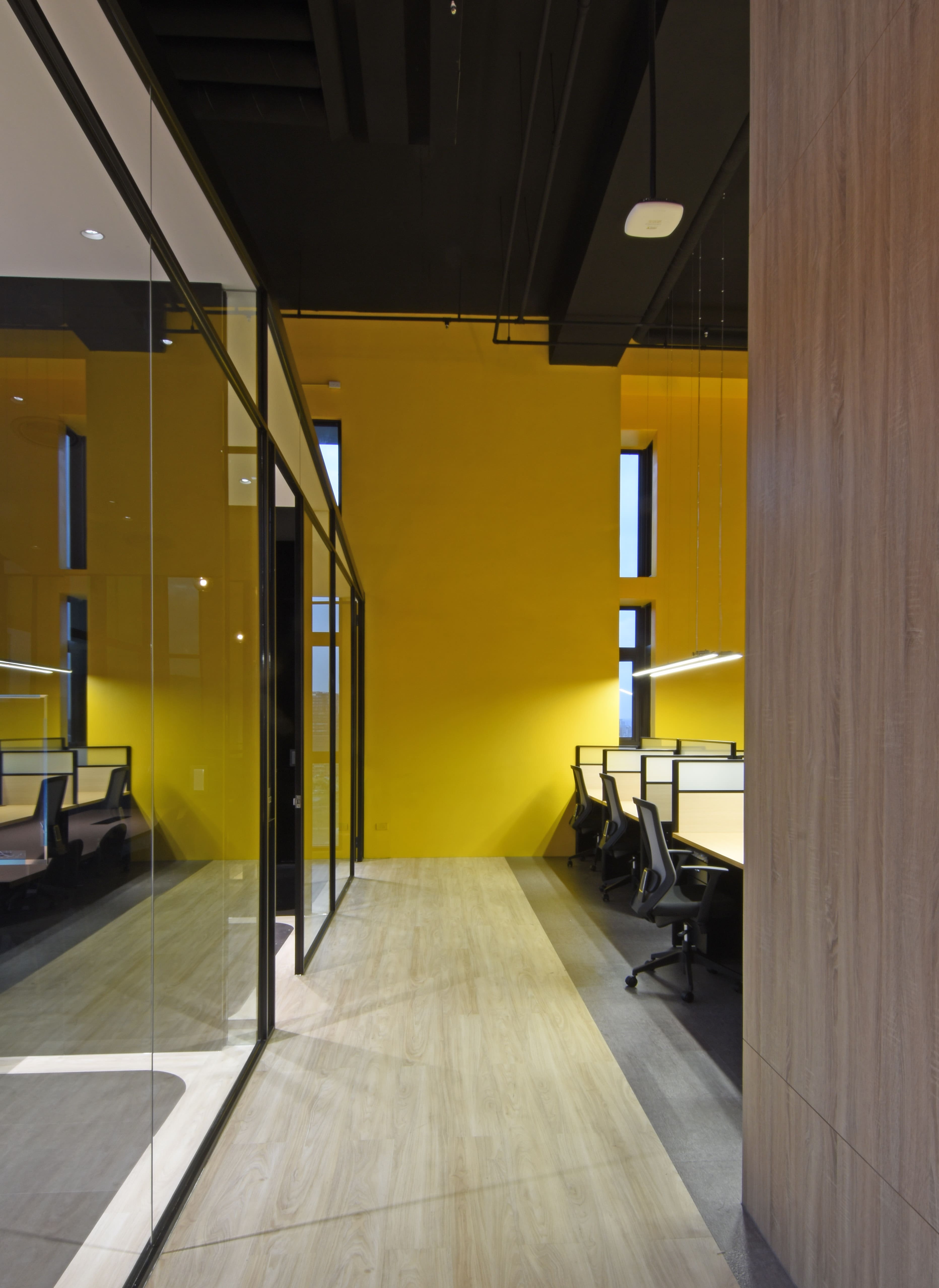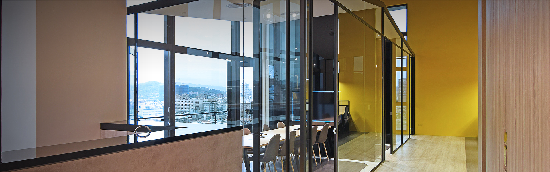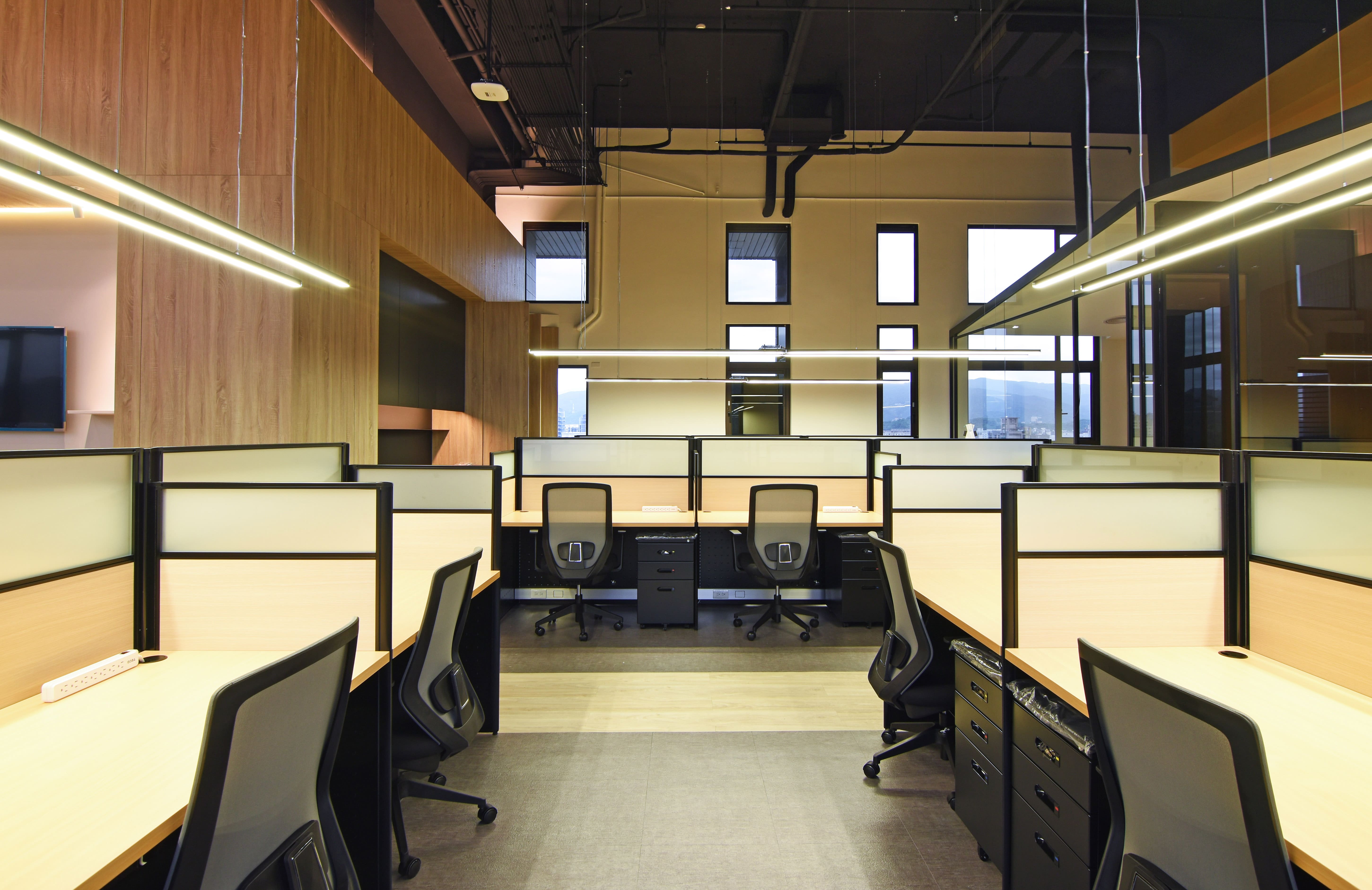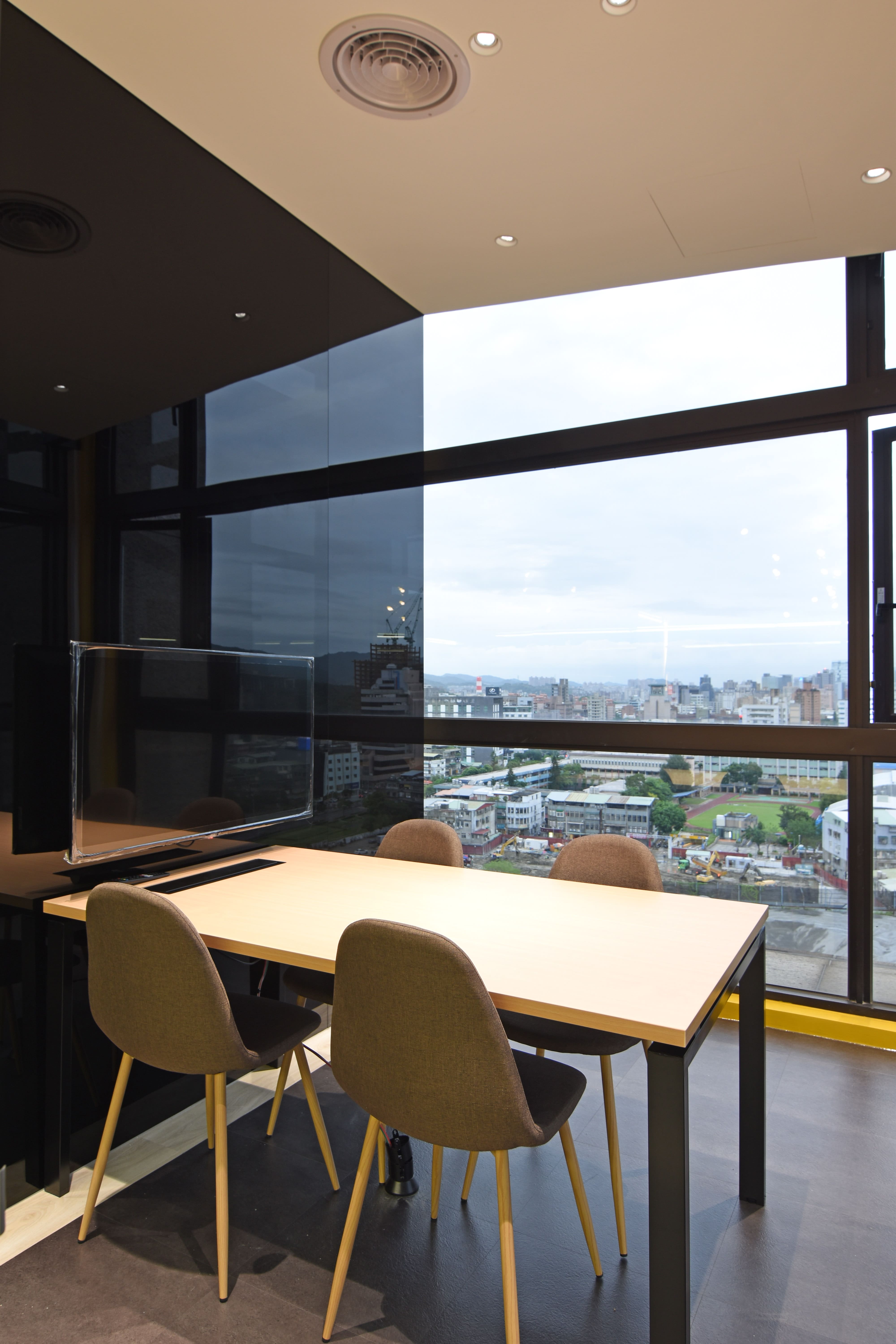 了解屋況與設計師的工業風風格後,在最短的時間與業主討論出最佳的OA方案。屏風的高低連結、搭配挑高空間與會議室的小房設計,線條感簡約不遮擋視線;落地窗前的高吧桌椅充分體現現代共享辦公形態,在工作時能隨時更換工作空間及調整狀態,同時擁有能放鬆思考的空間。
