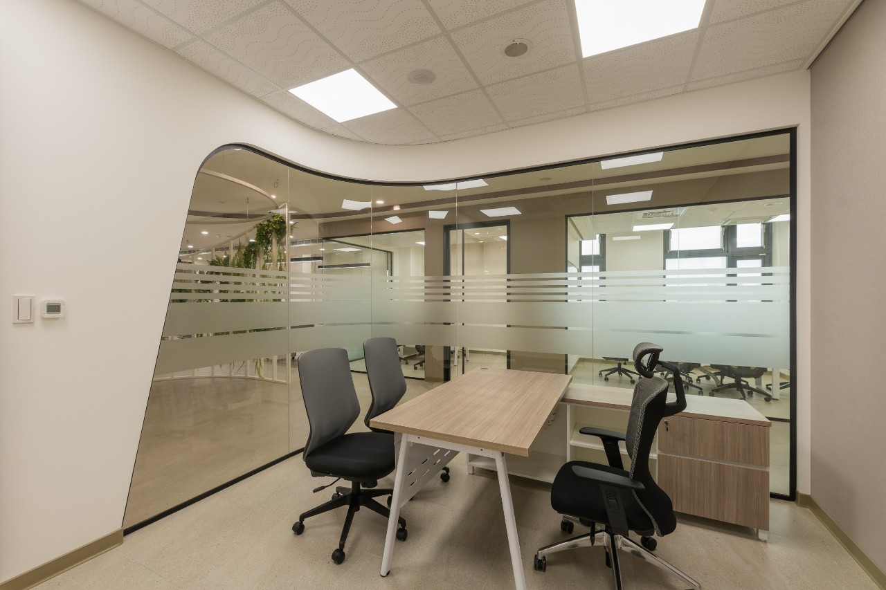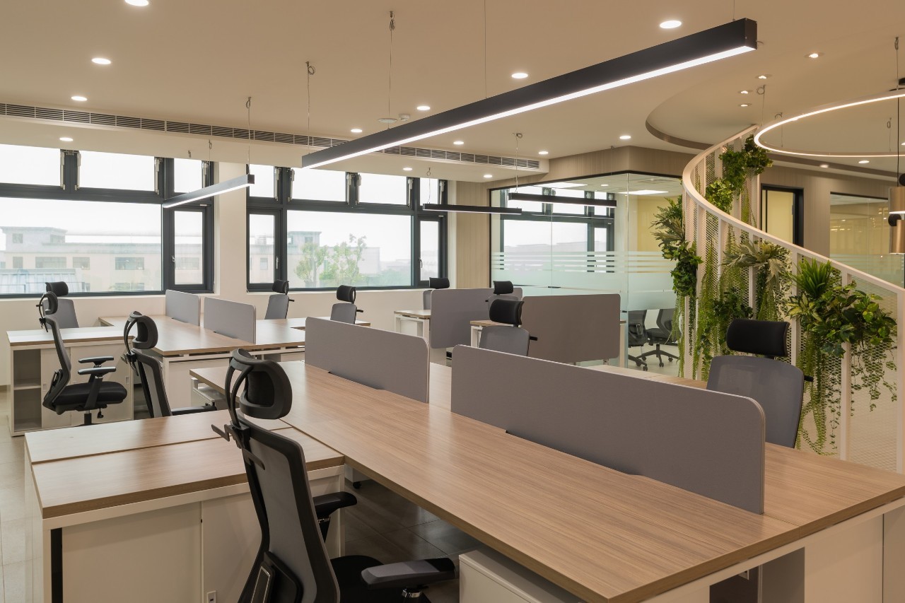 本案為新建廠辦,委由巨葉空間設計團隊與歐凌家具整體規劃,辦公區使用開放式工作站,適合團隊的溝通合作,配置活動櫃及收納櫃重視個人的收納空間;適當安排共享區域,除加深夥伴間的合作辦公,也能擁有適當休憩。整體採用白色為主調搭配淺木紋,呈現乾淨清爽的氛圍讓辧公室更加明亮朝氣;主管室採用
